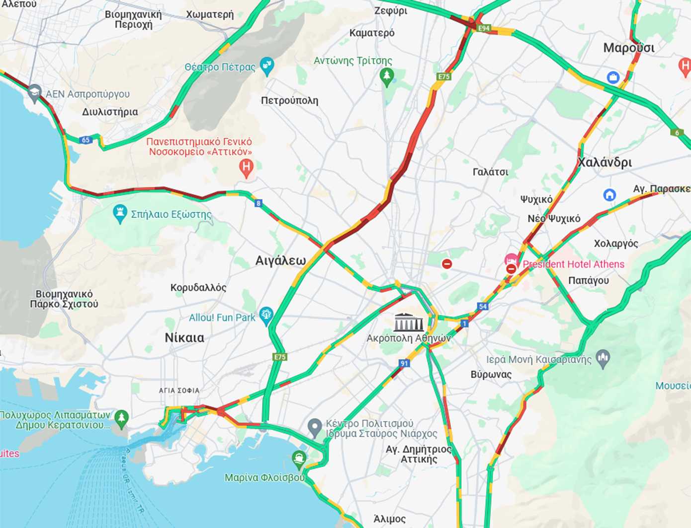 Δείτε τον χάρτη με την κίνηση τώρα στους δρόμους…