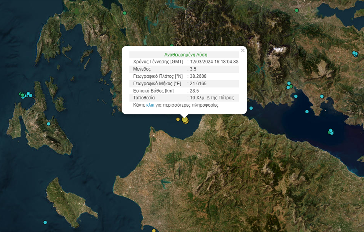 Σεισμός 3,5 Ρίχτερ σημειώθηκε στις 18:18 στην περιοχή του Πατραϊκού.