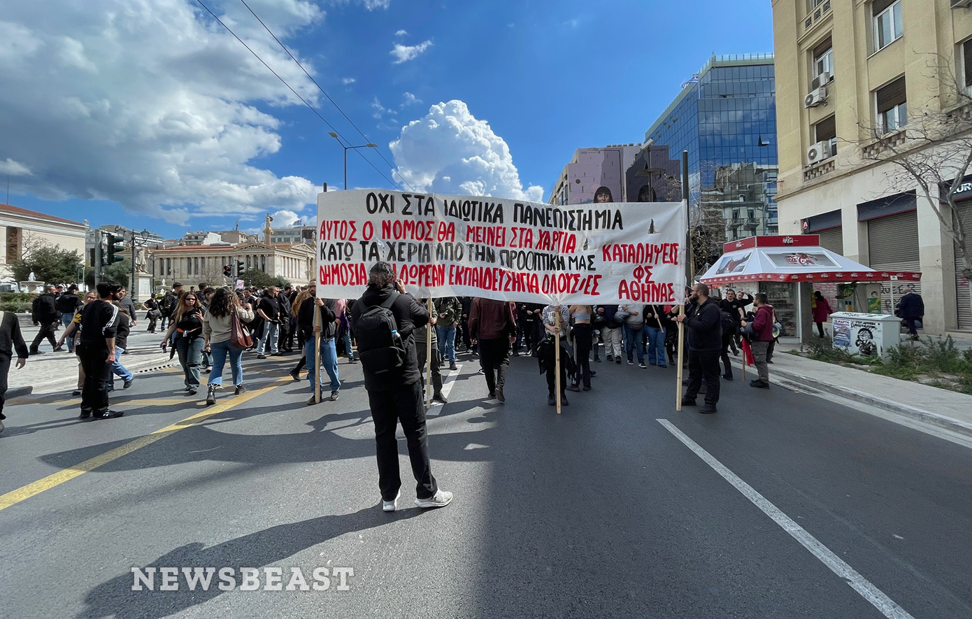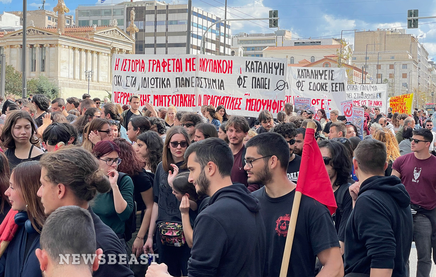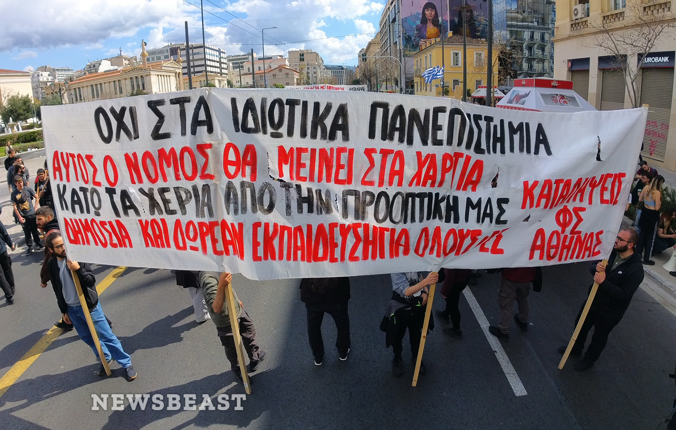 Σε εξέλιξη είναι αυτήν την ώρα το πανεκπαιδευτικό συλλαλητήριο στα Προπύλαια, με τους φοιτητές να διεκδικούν δημόσιες και δωρεάν σπουδές και να αντιτίθενται στο νομοσχέδιο του υπουργείου Παιδείας για τα ιδιωτικά πανεπιστήμια.
