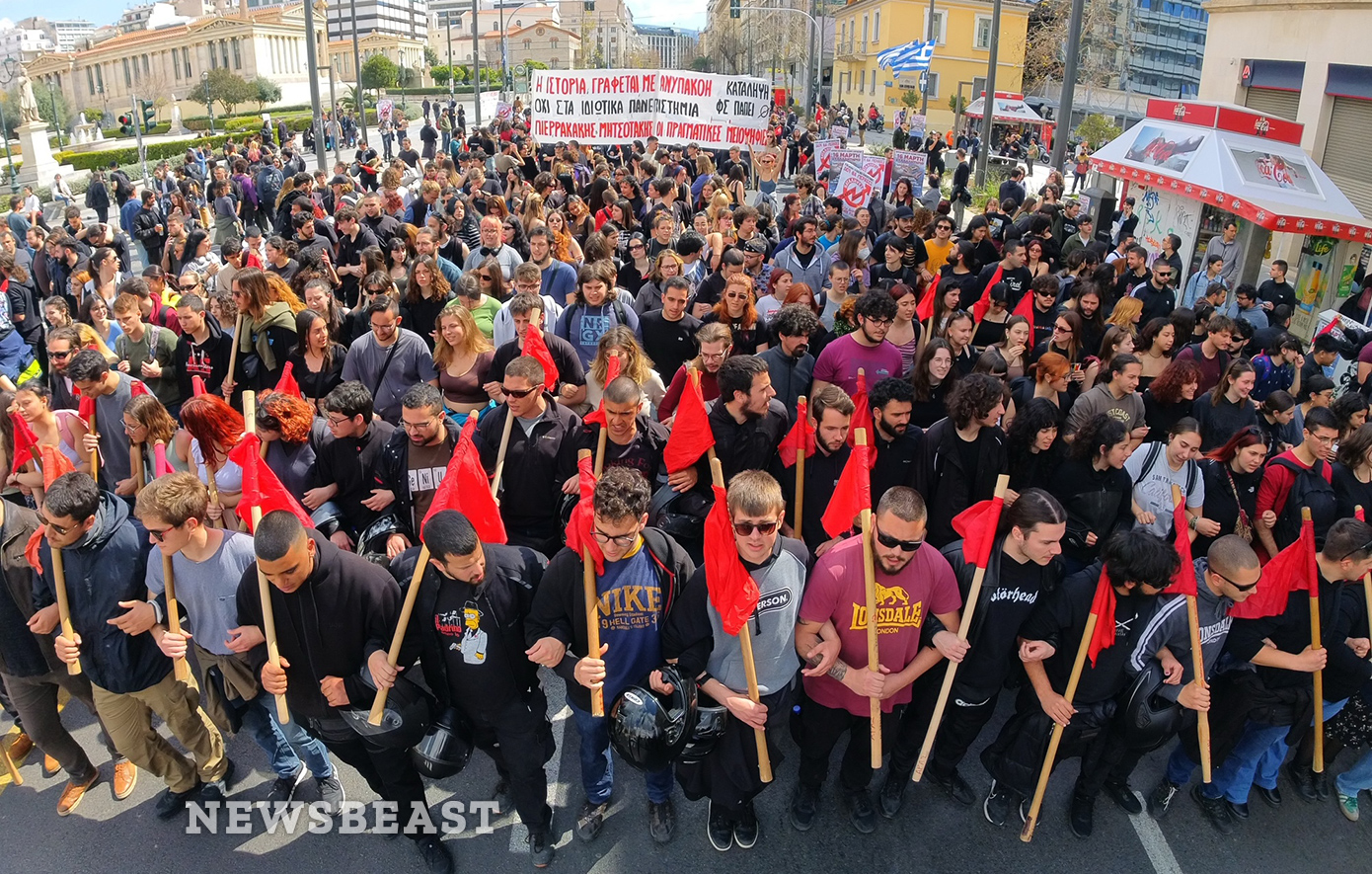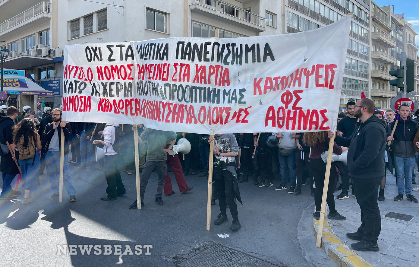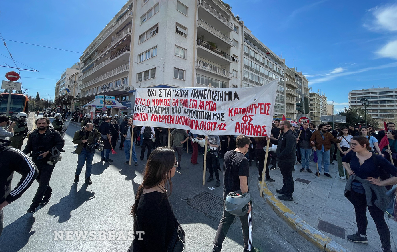 Σε εξέλιξη είναι αυτήν την ώρα το πανεκπαιδευτικό συλλαλητήριο στα Προπύλαια, με τους φοιτητές να διεκδικούν δημόσιες και δωρεάν σπουδές και να αντιτίθενται στο νομοσχέδιο του υπουργείου Παιδείας για τα ιδιωτικά πανεπιστήμια.