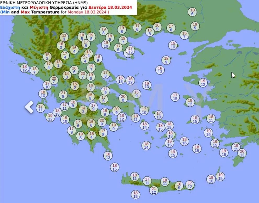 Η πρόγνωση της ΕΜΥ για την Κυριακή 17 Μαρτίου