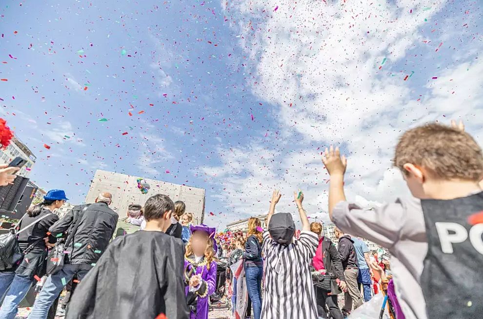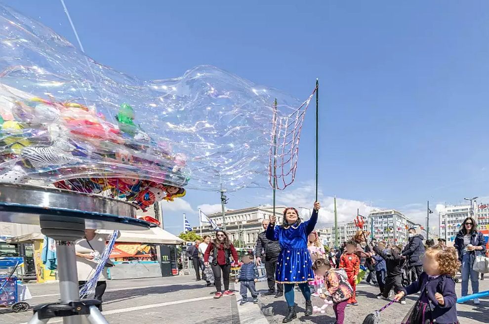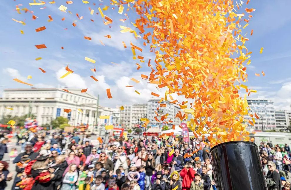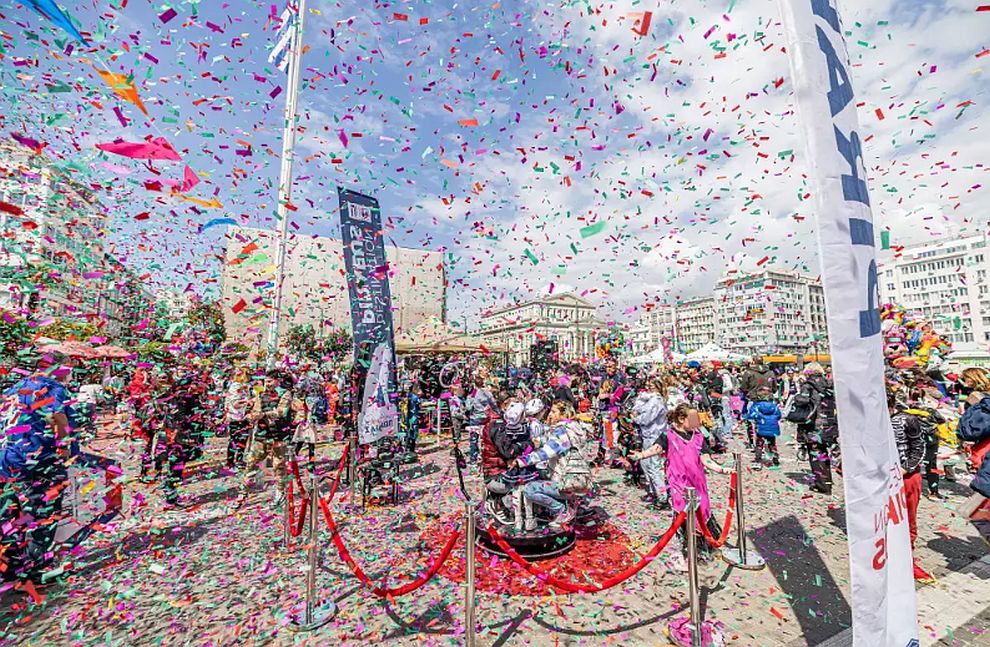 Μασκαράδες, μπαλόνια, σοκολατοπόλεμο, σερπαντίνες, κομφετί, αλλά και εκατοντάδες χαρταετούς περιλάμβανε το πάρτι για το καρναβάλι, του Δήμου Πειραιά στην Πλατεία Κοραή, το Σάββατο (16/3/24).