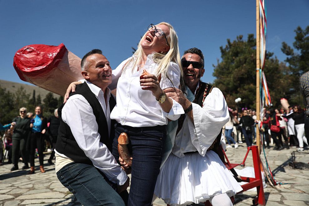 Αυτή την πρόσφεραν στους «μυημένους» και πίνοντας κρασί ή ένα γαλακτόχρουν κράμα ούζου ή τσίπουρου με νερό, άρχιζε ο χορός και τα τραγούδια, οι αστεϊσμοί και τα πειράγματα με άσεμνες βασικά εκφράσεις.