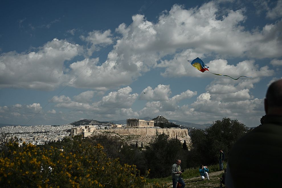 Γέμισε από κόσμο και χαρταετούς ο Λόφος του Φιλοπάππου, όπου παραδοσιακά οι Αθηναίοι περνάνε την ημέρα της Καθαράς Δευτέρας. Κι αν ο αέρας είναι ασθενής και δεν βοηθά πολύ στο πέταγμα του χαρταετού, η λιακάδα είναι υπέροχη και οι Αθηναίοι την απόλαυσαν.