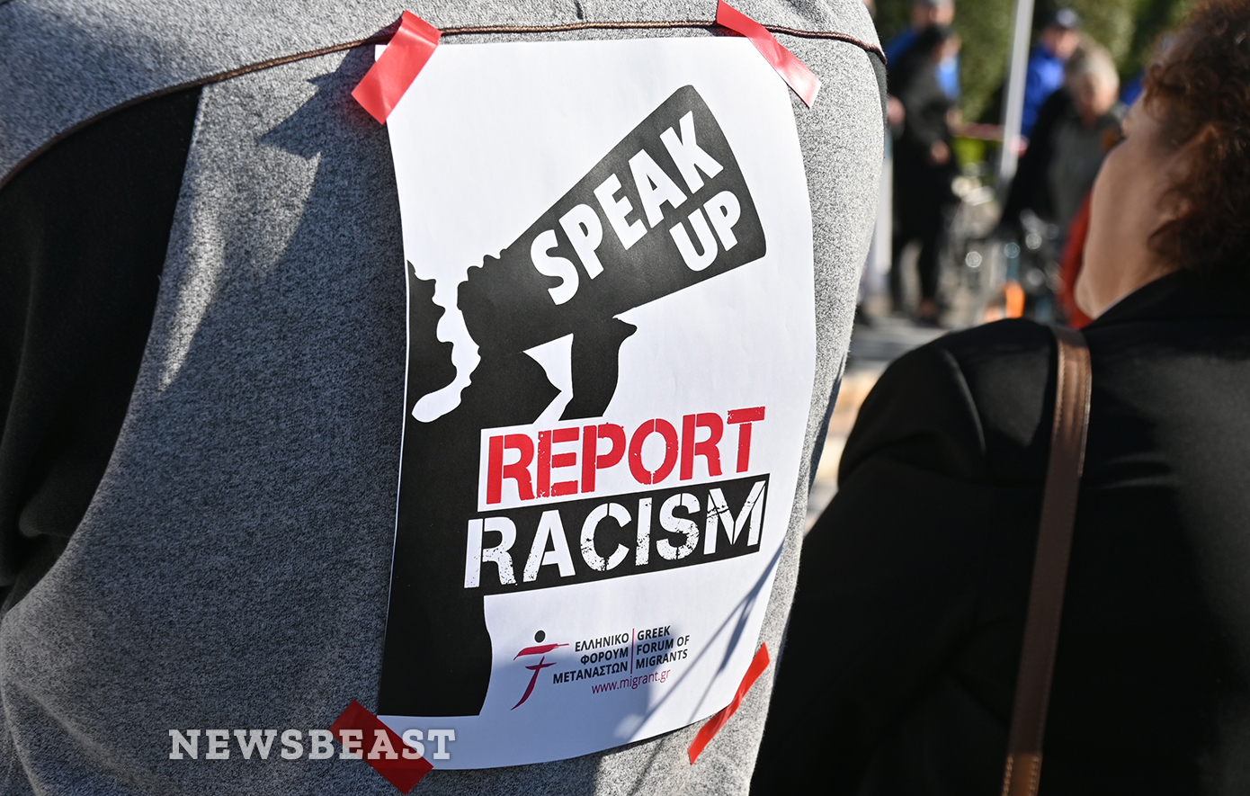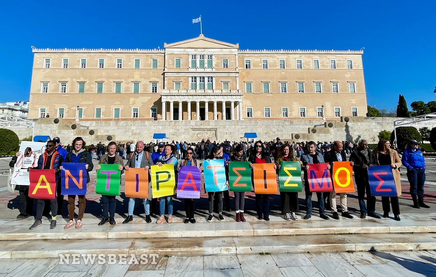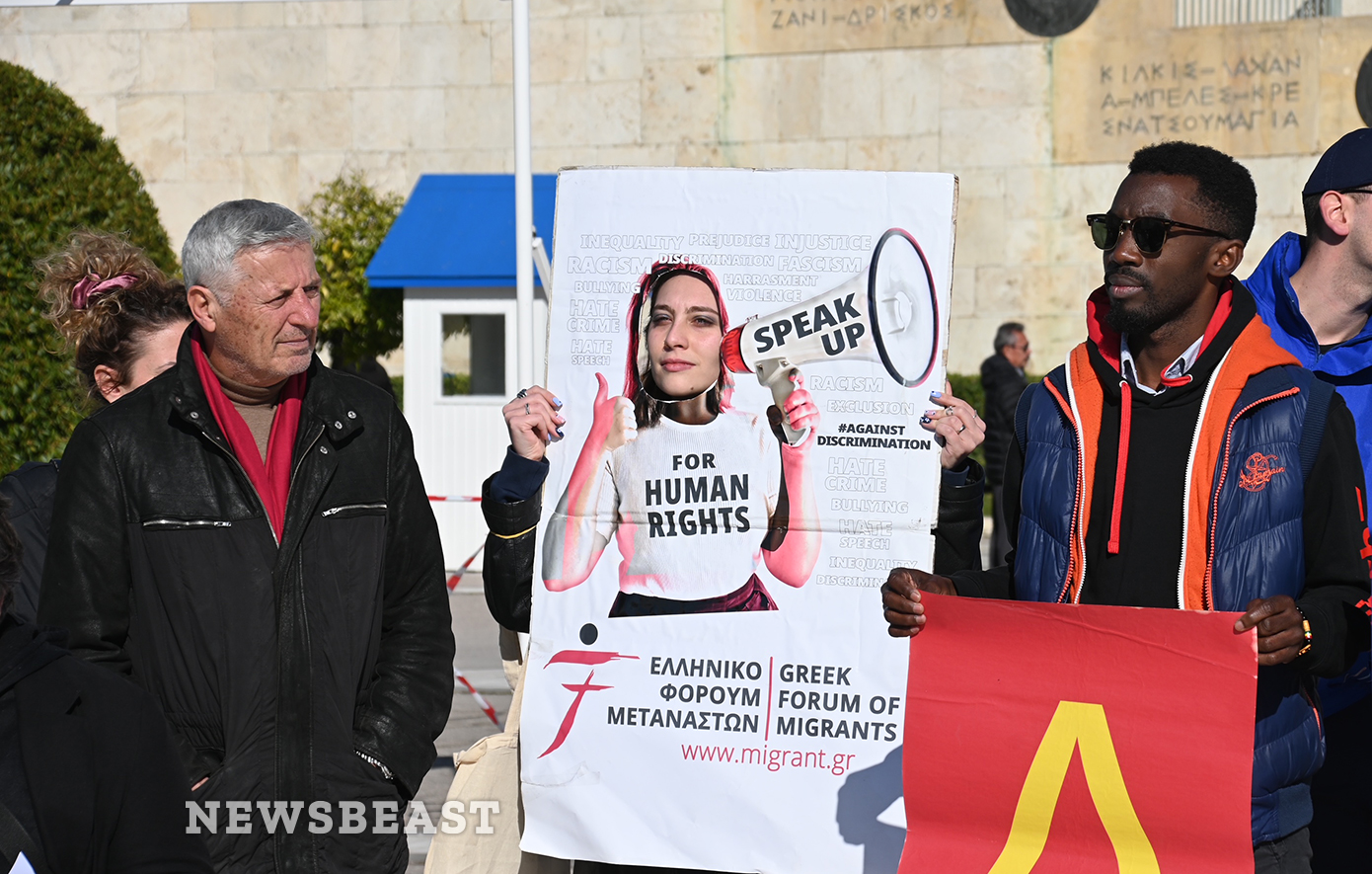 Συμβολική συγκέντρωση έλαβε χώρα έξω από τη Βουλή, μπροστά από το μνημείο του Άγνωστου Στρατιώτη για την Ημέρα κατά του Ρατσισμού.