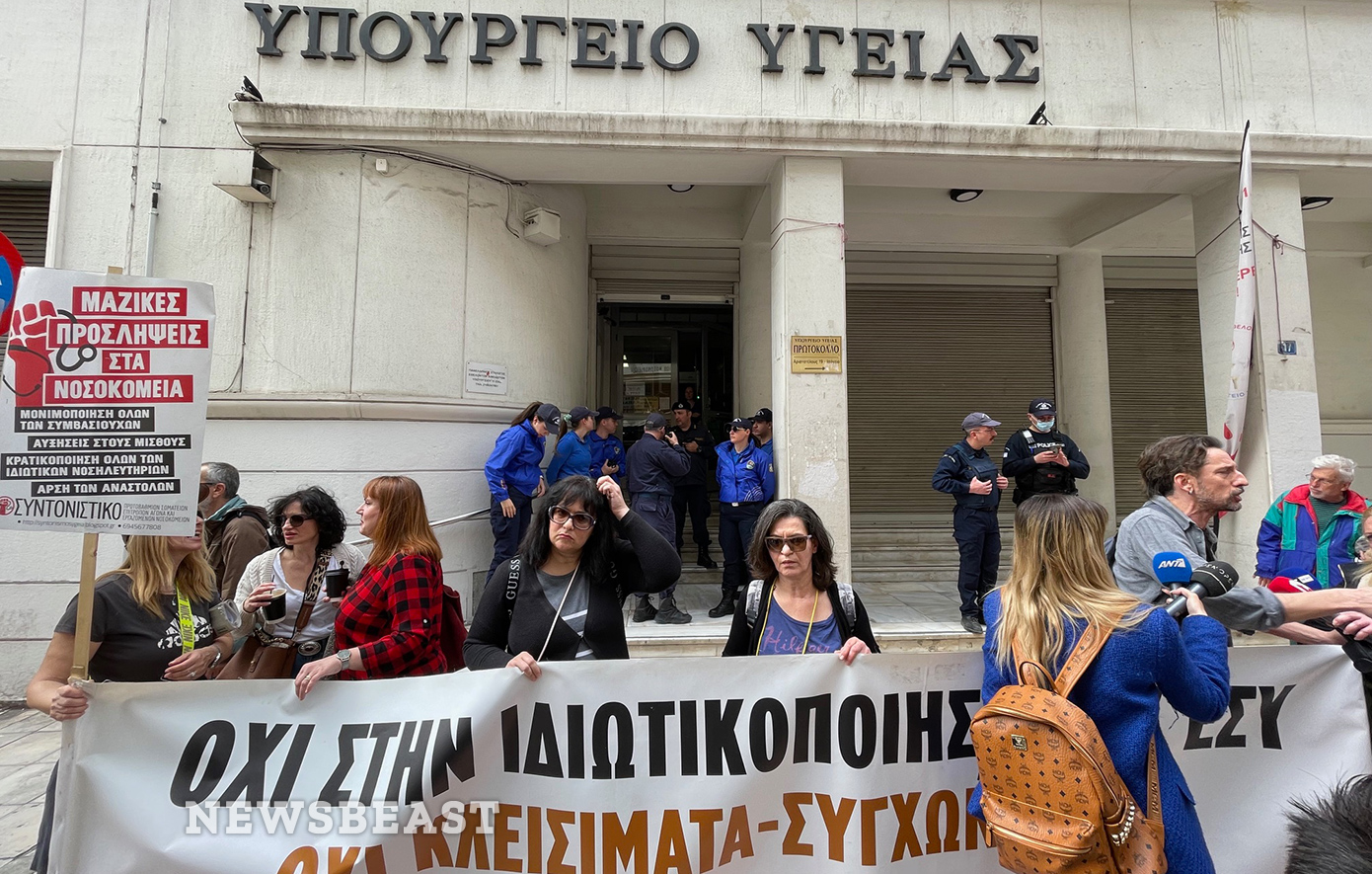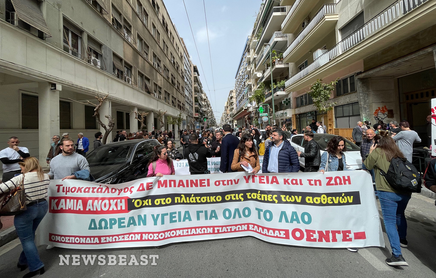 Συγκέντρωση διαμαρτυρίας πραγματοποιούν αυτή την ώρα γιατροί του ΕΣΥ στο υπουργείο Υγείας.