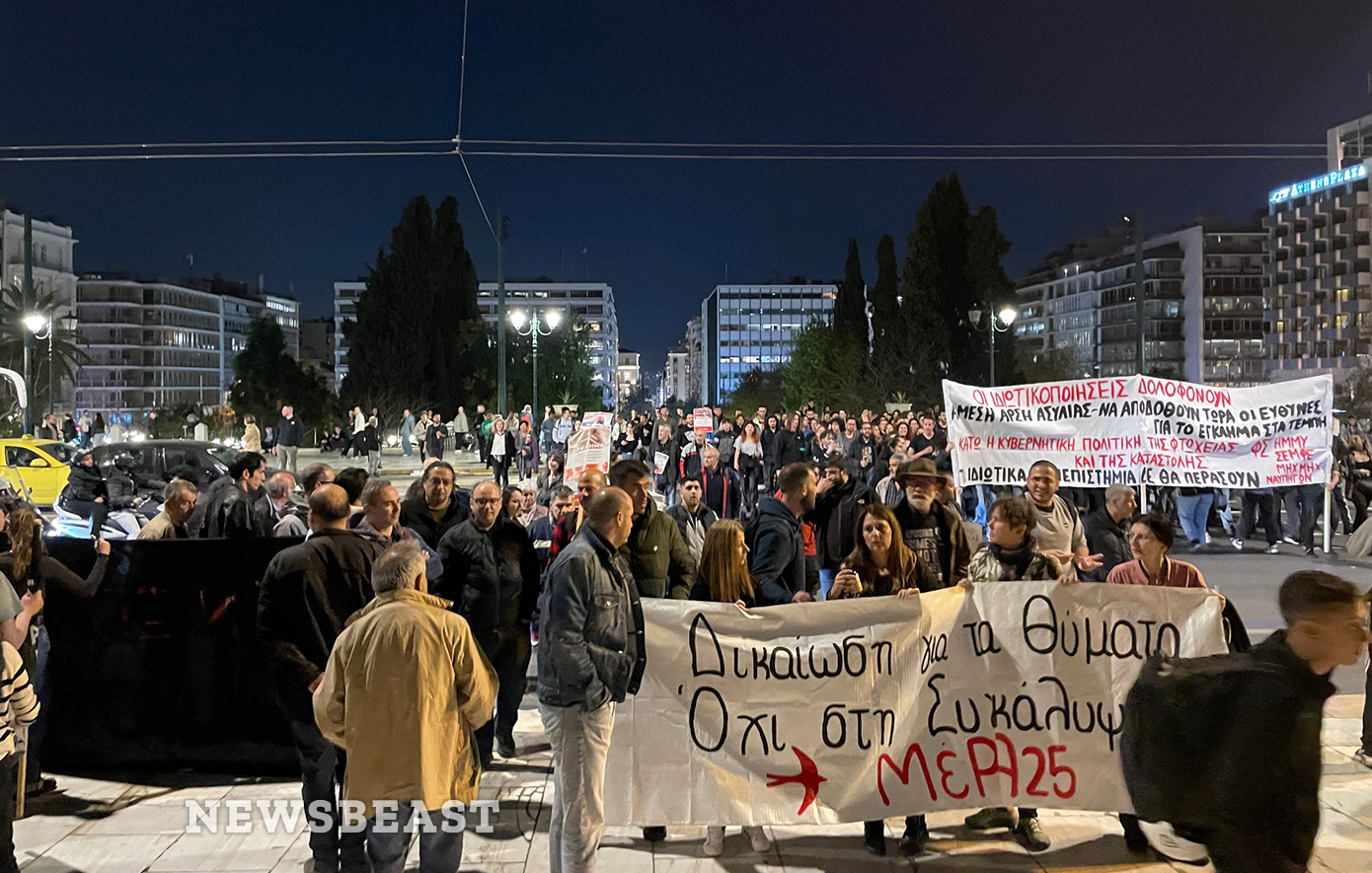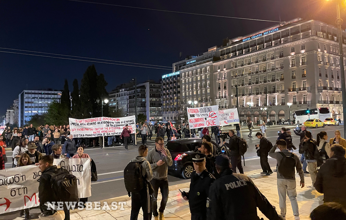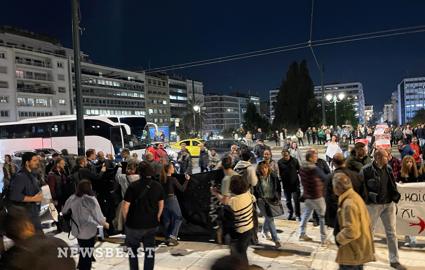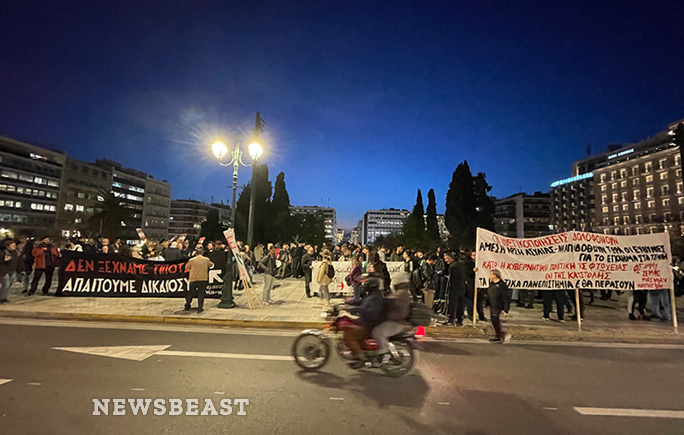 Συγκέντρωση διαμαρτυρίας έξω από τη Βουλή πραγματοποιούν δεκάδες άνθρωποι μετά από κάλεσμα οργανώσεων και κομμάτων της Αριστεράς, τονίζοντας πως η κυβέρνηση της ΝΔ «προκαλεί αποτροπιασμό με την προκλητική στάση της» στη διαχείριση της τραγωδίας των Τεμπών.