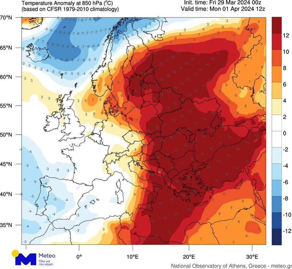 Μετά τις πολύ υψηλές θερμοκρασίες στη Νότια Ελλάδα την Τετάρτη 27 και Πέμπτη 28/03, νέα πολύ σημαντική άνοδος της θερμοκρασίας αναμένεται την Πρωταπριλιά!