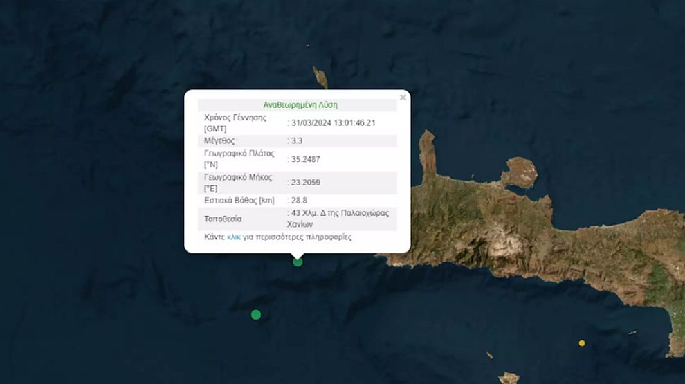 Νέος σεισμός σημειώθηκε ανοιχτά της Κρήτης, νωρίς το απόγευμα της Κυριακής (31.03.2024).