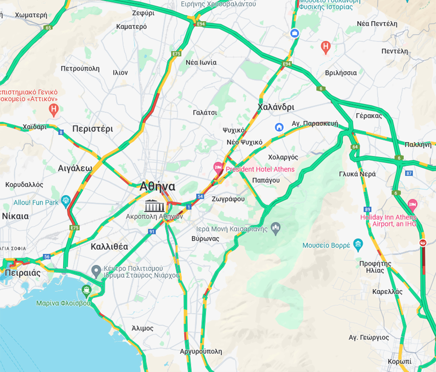 Παράλληλα, αυξημένη είναι η κίνηση στον Κηφισό, καθώς και σε τμήματα της λεωφόρου Κηφισίας.
