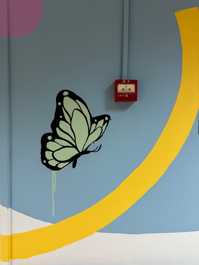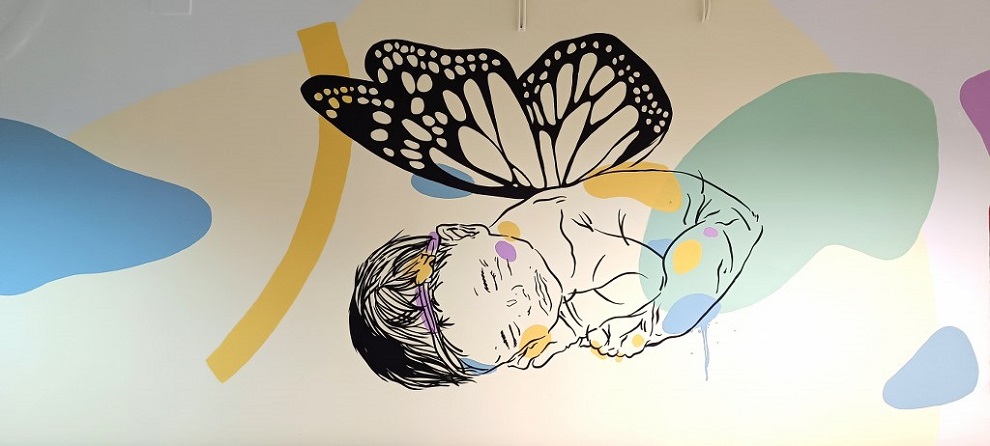 «Το έργο μου απλώνεται στους χώρους του Νοσοκομείου καθ’ όλη την διαδρομή, με σχήματα και παλ χρώματα και με κυρίαρχες φιγούρες τις πεταλούδες. Ακόμη και ένα νεογέννητο βρέφος που έχω ζωγραφίσει και αποτελεί μια κεντρική φιγούρα του όλου μου έργου, έχει και αυτό φτερά πεταλούδας. Οι πεταλούδες είναι από μόνες τους ένα σύμβολο χαράς ελπίδας, ζωής και δύναμης. Επίσης οι πεταλούδες παραπέμπουν στην αλλαγή, στη δύναμη, στην ελευθερία και στην αρχή μιας νέας ζωής, στοιχεία που ήθελα να «περάσω» στις φιλοξενούμενες γυναίκες των κλινικών. Τέλος στην είσοδο του χώρου έχω ζωγραφίσει και μια μητέρα σε θηλασμό μια υπενθύμιση για το πόσο σημαντικό είναι» αναφέρει ο Same84.