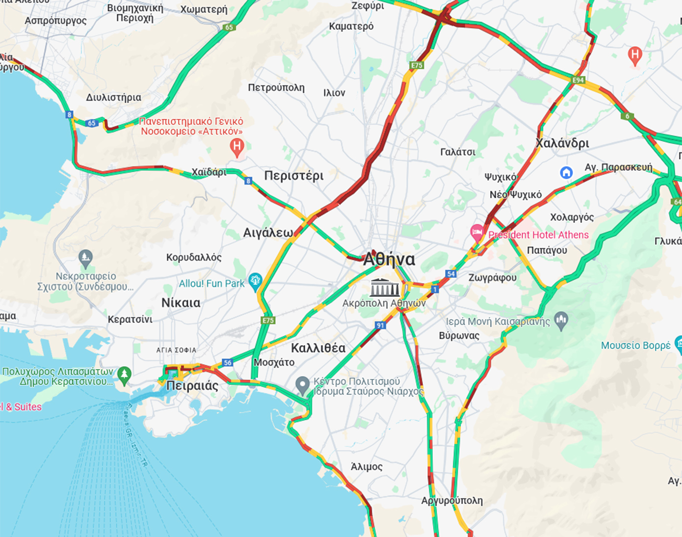 Δείτε τον χάρτη με την κίνηση τώρα στους δρόμους: