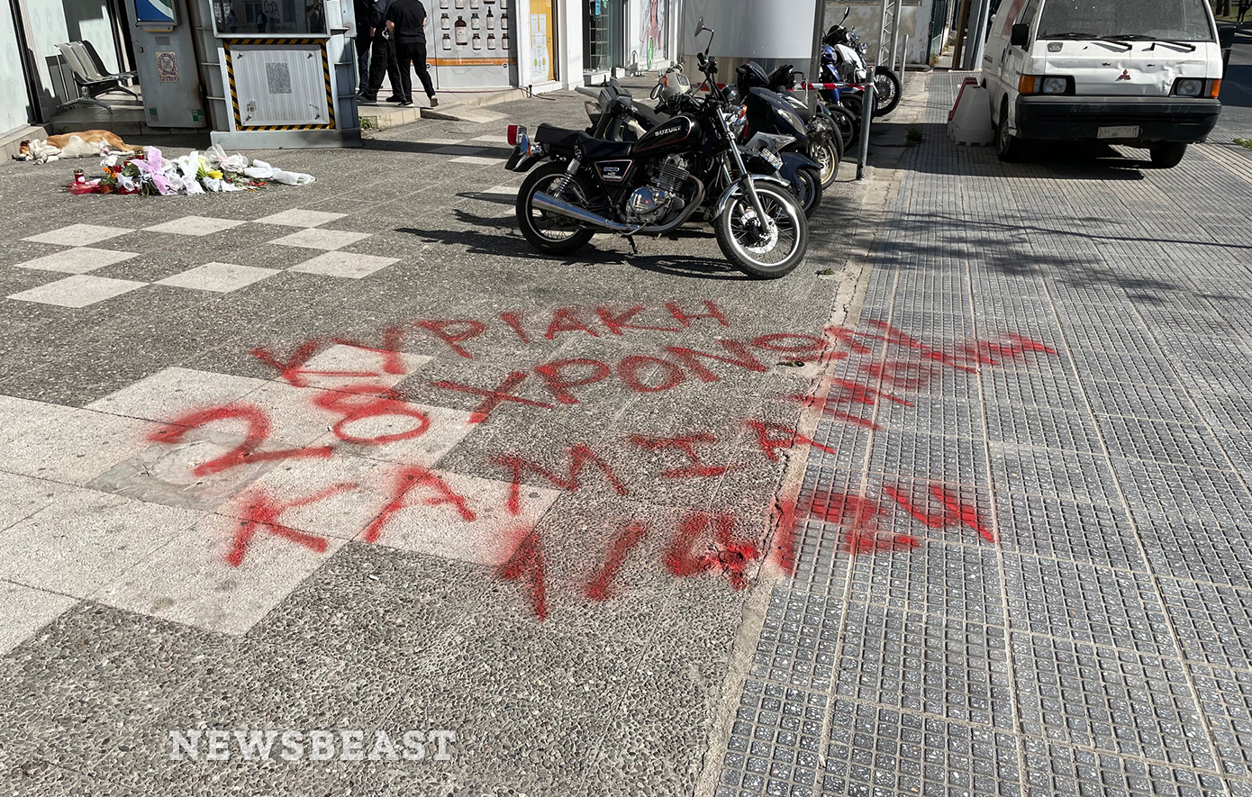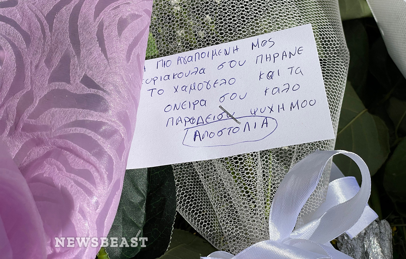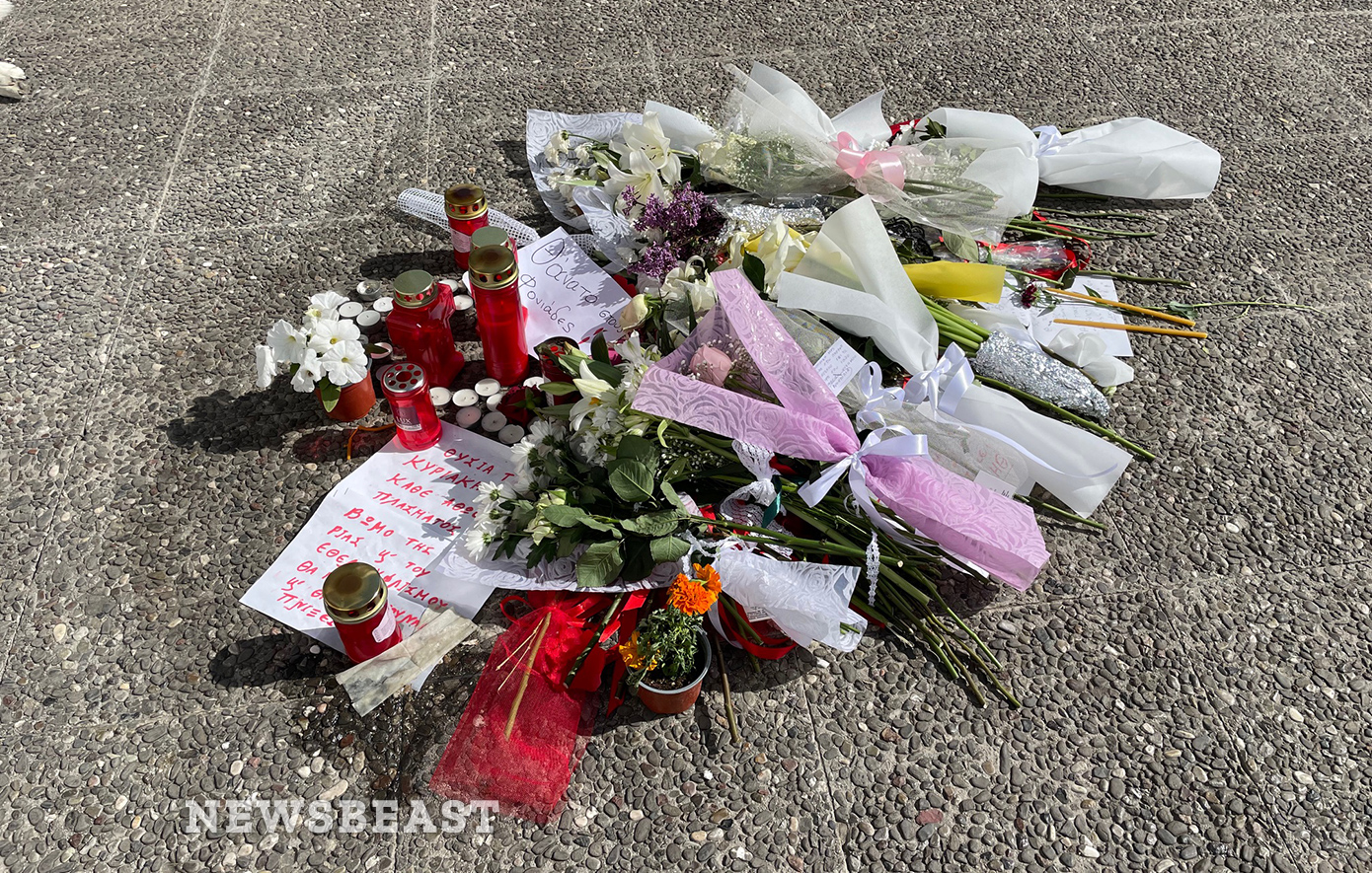 «Κυριακή 28 χρονών – Καμία μόνη – 1/4/24» έχει γραφτεί με μεγάλα κόκκινα γράμματα έξω από το αστυνομικό τμήμα στους Αγίους Αναργύρους, στο σημείο της φριχτής δολοφονίας της Κυριακής Γρίβα από τον πρώην σύντροφό της. Λίγο πιο δίπλα, λουλούδια και σημειώματα. «Η πιο αγαπημένη μας. Κυριακούλα, σου πήραν το χαμόγελο και τα όνειρά σου. Καλό παράδεισο, ψυχή μου», γράφει μια γυναίκα σε ένα από αυτά.