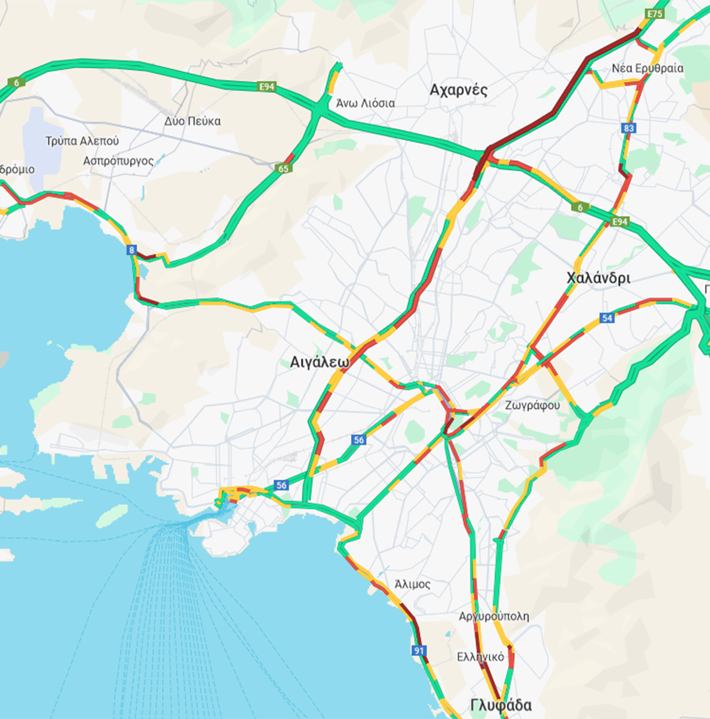 Επίσης με χαμηλές ταχύτητες κινούνται οι οδηγοί στην παραλιακή, αλλά και στους δρόμους πέριξ από το κέντρο της Αθήνας.