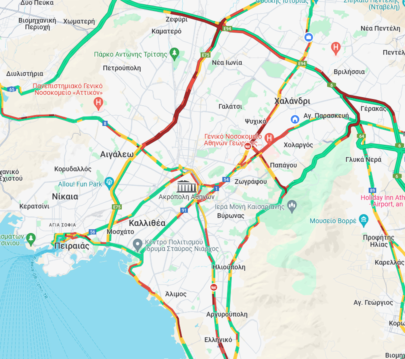 Δείτε τον χάρτη με την κίνηση τώρα στους δρόμους…