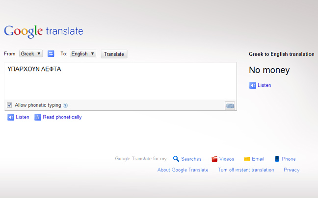 Δοκιμάστε και μόνοι σας να γράψετε με κεφαλαίους ελληνικούς χαρακτήρες: ΥΠΑΡΧΟΥΝ ΛΕΦΤΑ και ζητήστε να σας το μεταφράσει στην αγγλική γλώσσα…