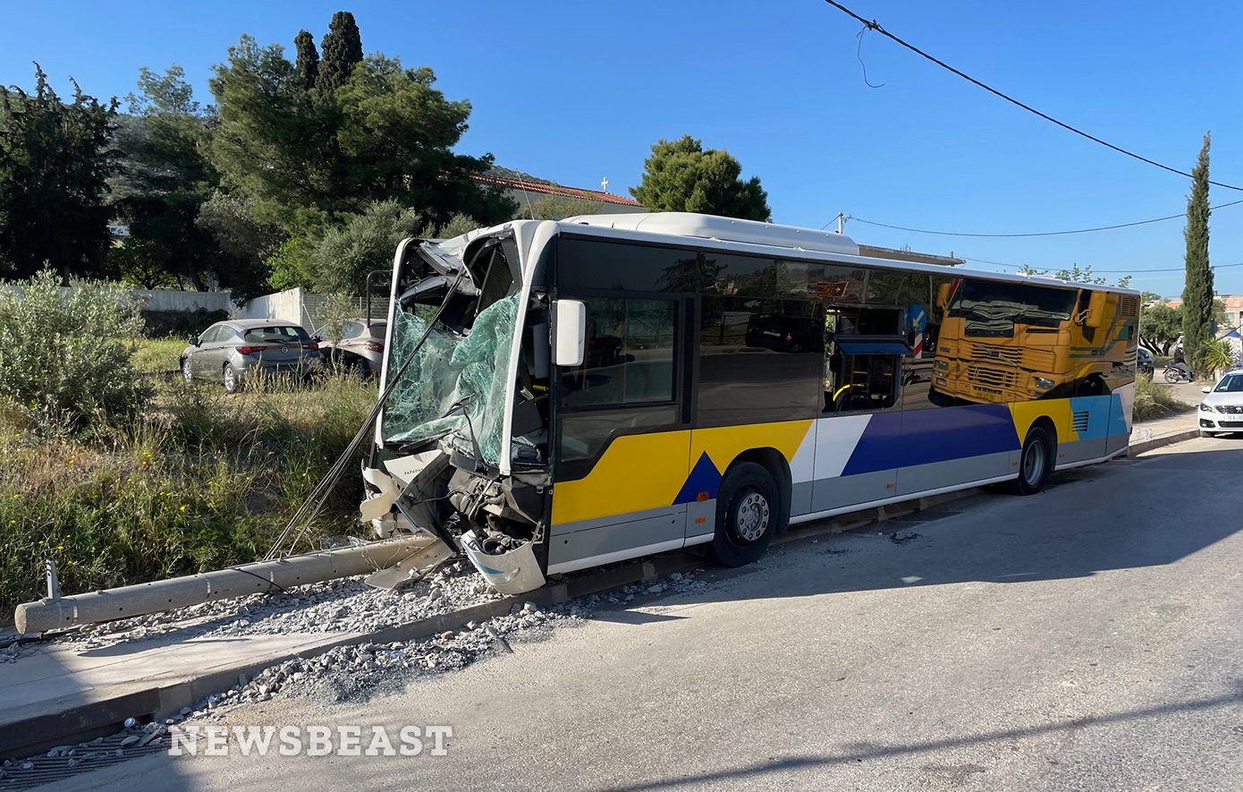 Ο οδηγός του λεωφορείου έχασε τον έλεγχο του οχήματος, αυτό εξετράπη της πορείας του και έπεσε σε κολόνα ηλεκτροφωτισμού.