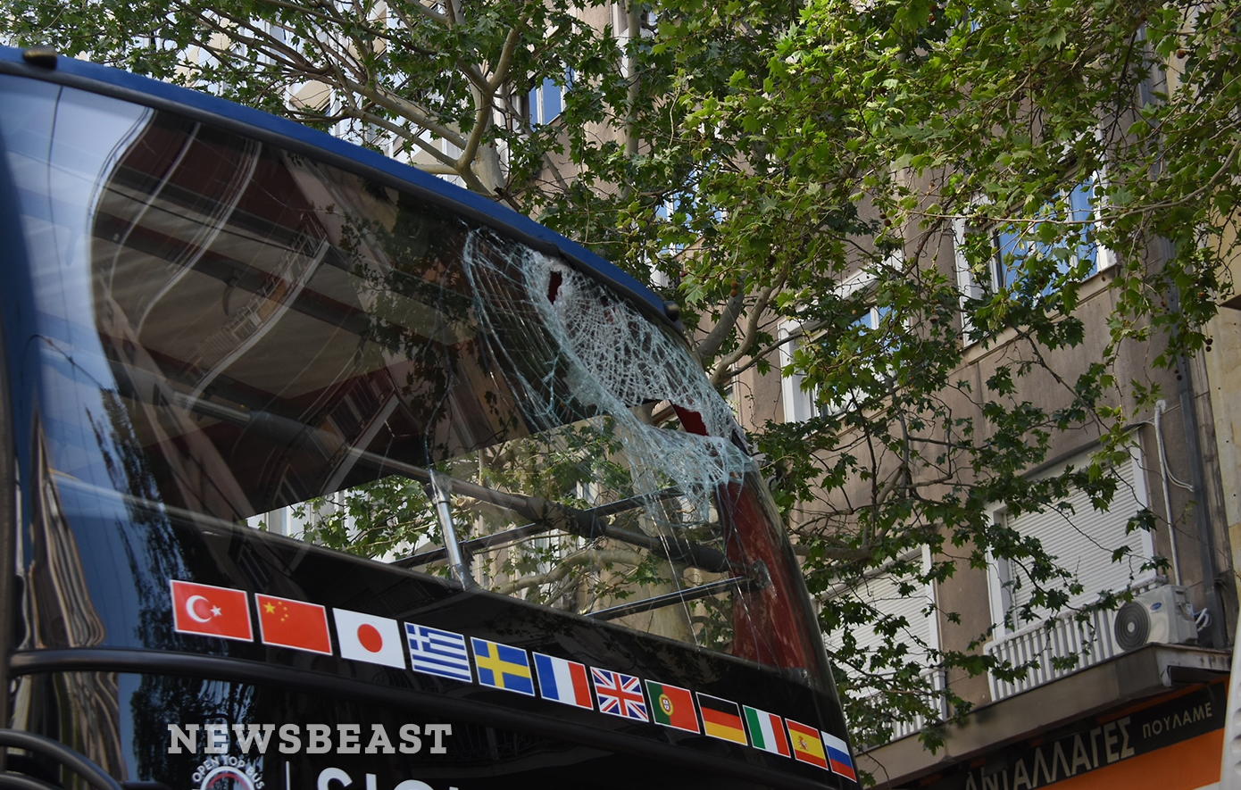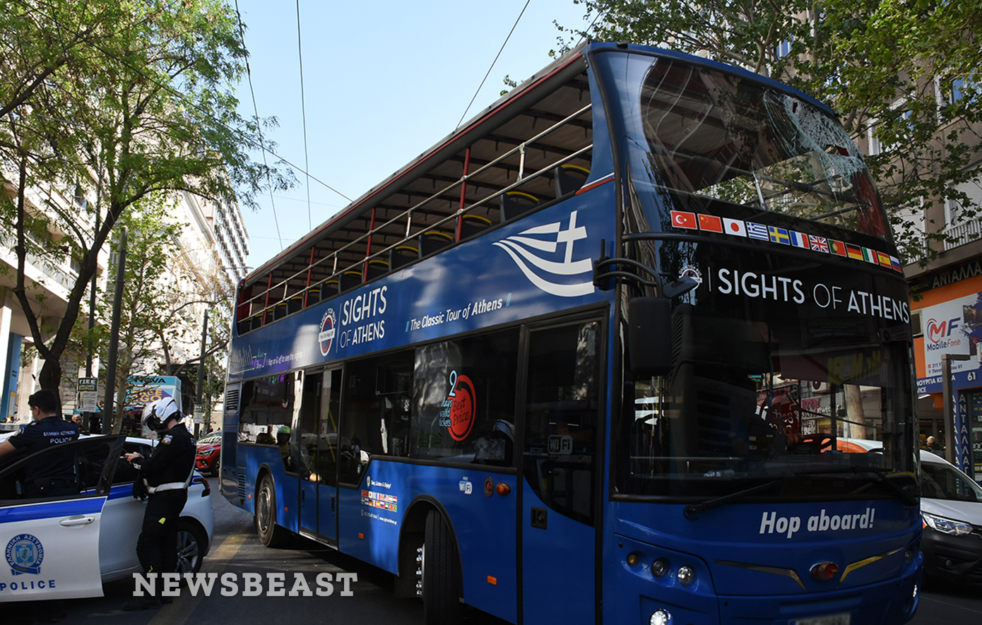 Σύμφωνα με την ΕΛ.ΑΣ., το ατύχημα σημειώθηκε περίπου στις 3:30, όταν καλώδιο από τρόλεϊ, για άγνωστη μέχρι στιγμής αιτία, έπεσε πάνω στην οροφή του διερχόμενου λεωφορείου, τραυματίζοντας ελαφρά έξι τουρίστες που επέβαιναν σε αυτό.
