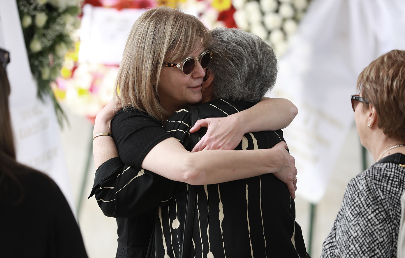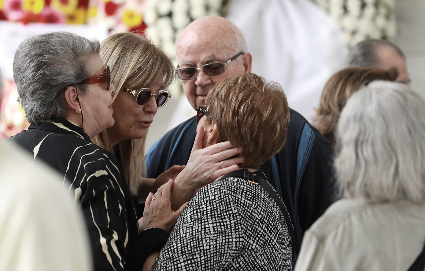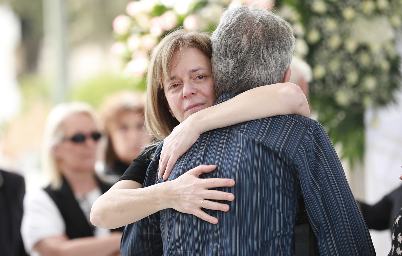Η Μαρίνα Ψάλτη, η σύζυγος του Γιάννη Φέρτη τα τελευταία 23 χρόνια, συντετριμμένη από την απώλεια, ήταν εκεί για να υποδεχτεί όσους τίμησαν τη μνήμη του Γιάννη Φέρτη και βρέθηκαν σήμερα, 16 Απριλίου, στο Α’ Νεκροταφείο για να τον αποχαιρετίσουν.