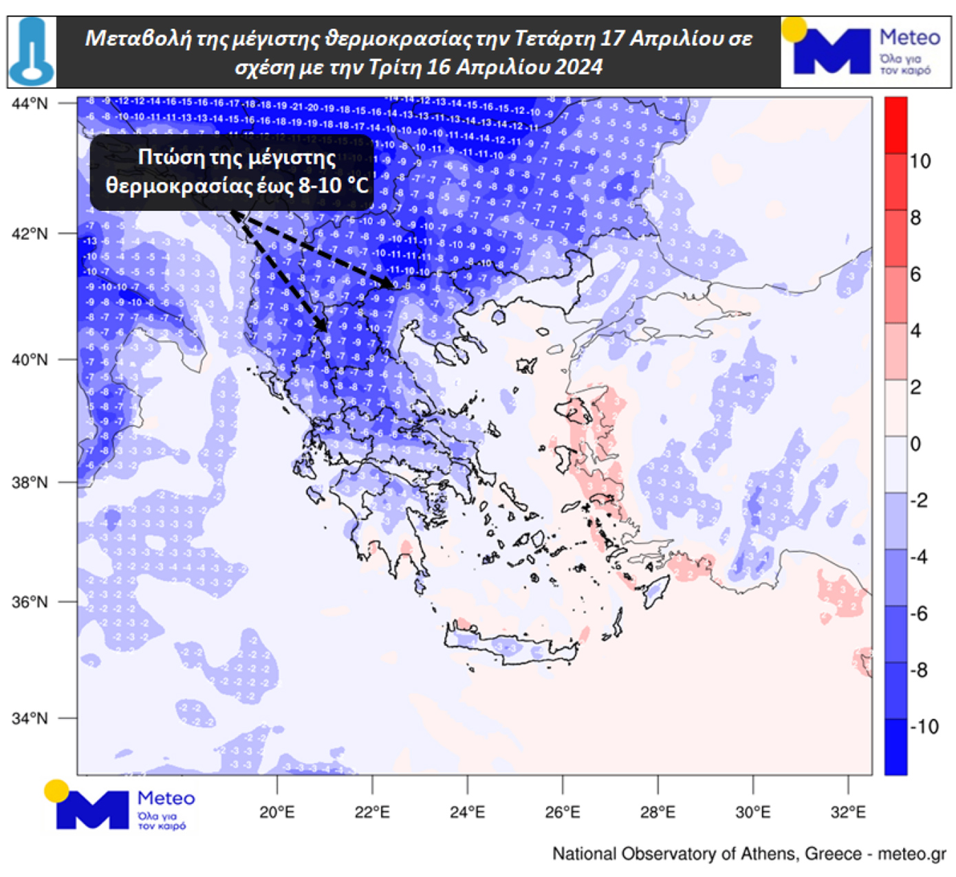 Η θερμοκρασία θα σημειώσει μικρή περαιτέρω πτώση στα δυτικά και τα βόρεια.