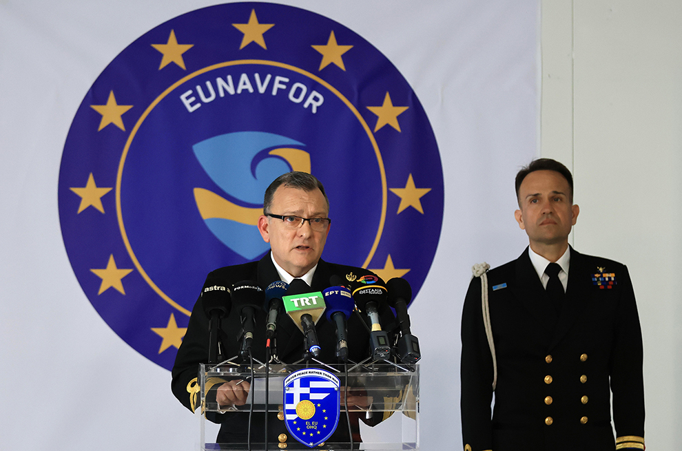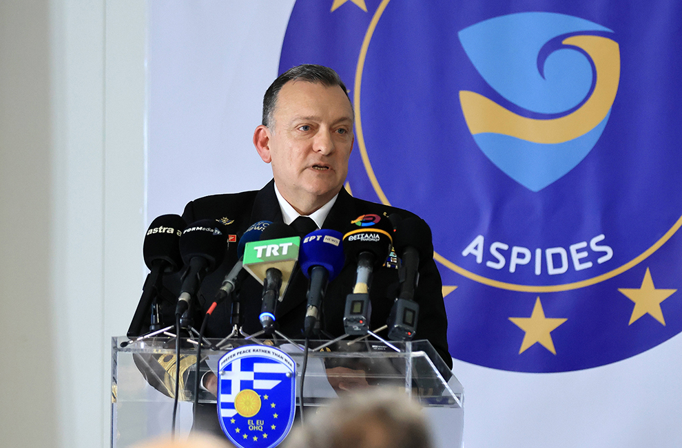 Στο στρατηγείο της 1ης ΣΤΡΑΤΙΑΣ/EU-OHQ στη Λάρισα, που συντονίζει την επιχείρηση «Ασπίδες» στην Ερυθρά Θάλασσα, δόθηκε συνέντευξη Τύπου σχετικά με τις ενέργειες που αναλαμβάνει.