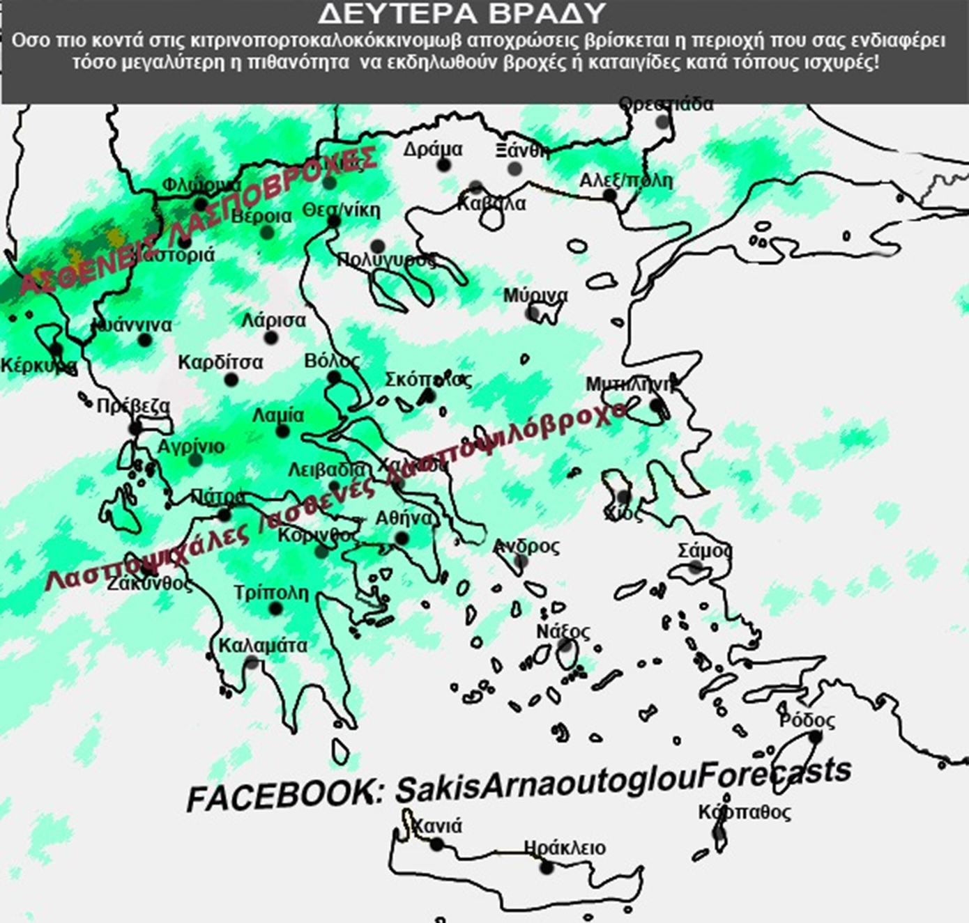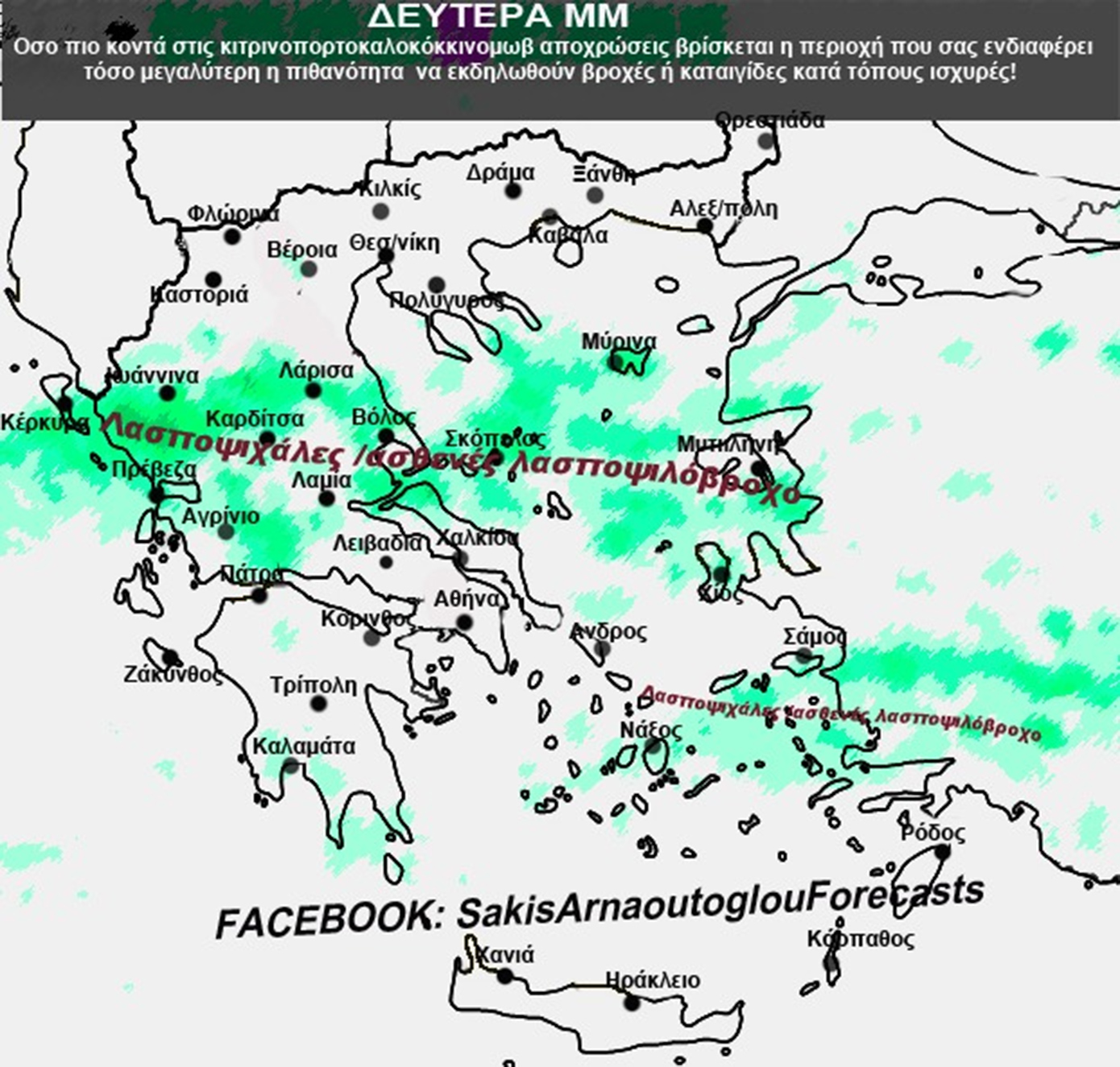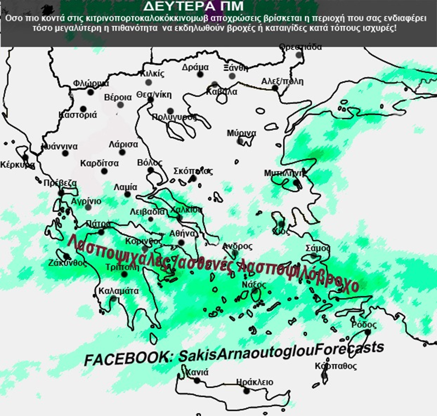Ειδικότερα, στην ανάρτησή του ο Σάκης Αρναούτογλου γράφει: «Οι ασθενείς λασποβροχές βροχές τη Δευτέρα 22/4 έως και αργά τη νύχτα ανά 6ωρο με μια ματιά!