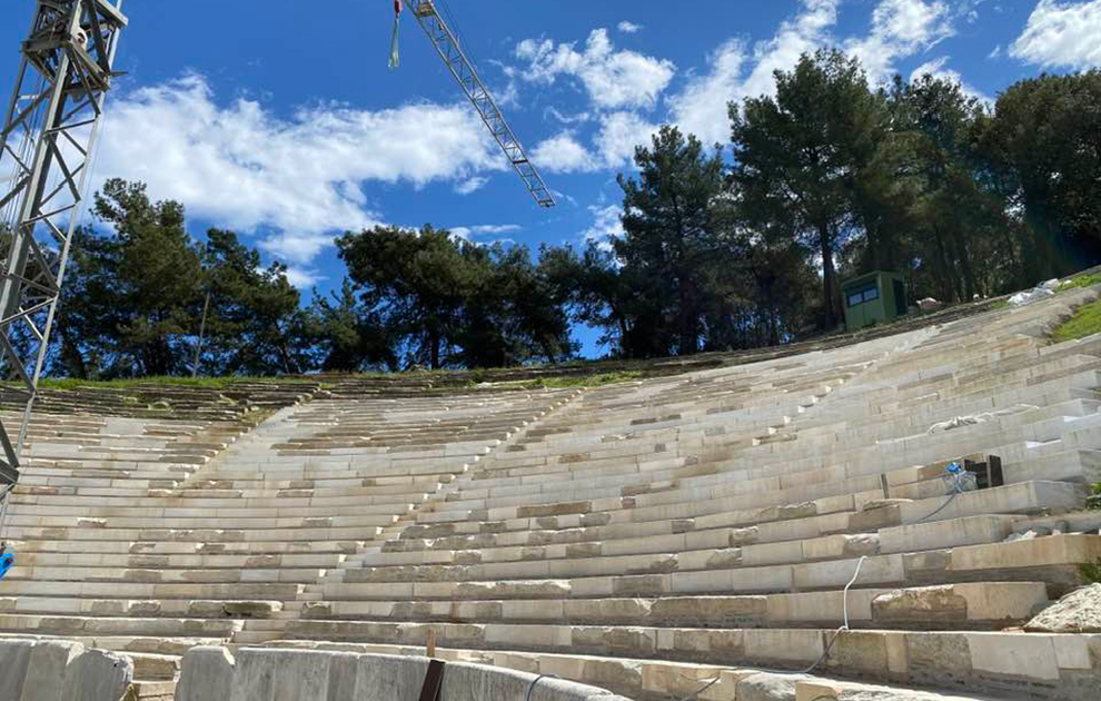 Στο επόμενο χρονικό διάστημα αναμένεται να απομακρυνθεί από το εσωτερικό του αρχαίου θεάτρου ο γερανός, με τη βοήθεια του οποίου έγινε η τοποθέτηση των εδωλίων, ώστε στη συνέχεια να ολοκληρωθεί και το έργο της επίστρωσης της ορχήστρας. Το αρχαίο θέατρο θα είναι εν μέρει επισκέψιμο, κυρίως στο κοίλο του, αφού οι εργασίες θα συνεχίζονται στο εσωτερικό του, ωστόσο οι επισκέπτες θα έχουν την ευκαιρία να θαυμάσουν από κοντά το έργο της αποκατάστασης που έγινε.