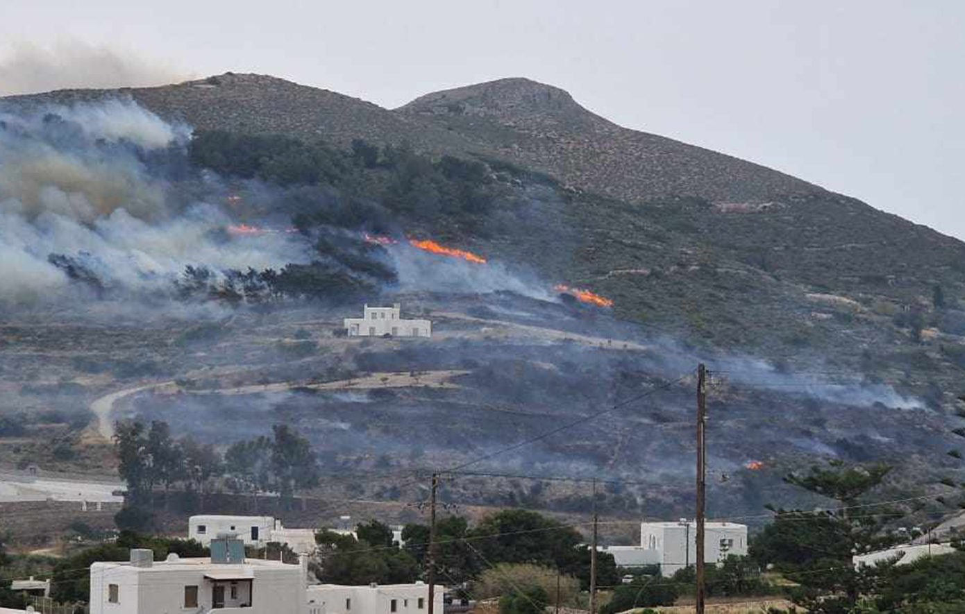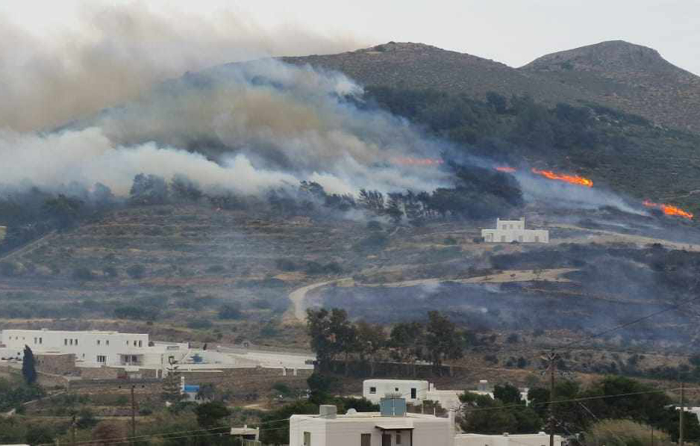 Νωρίτερα, μήνυμα του 112 εστάλη στους κατοίκους της περιοχής Πυργάκι Παροικιάς, προκειμένου να απομακρυνθούν προς Παραλία Παροικιάς, λόγω της φωτιάς που ξέσπασε.