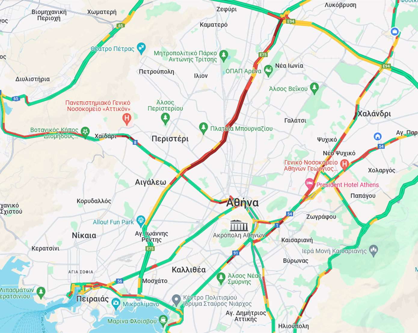 Δείτε τον χάρτη με την κίνηση τις 08:02 το πρωί της Τρίτης…