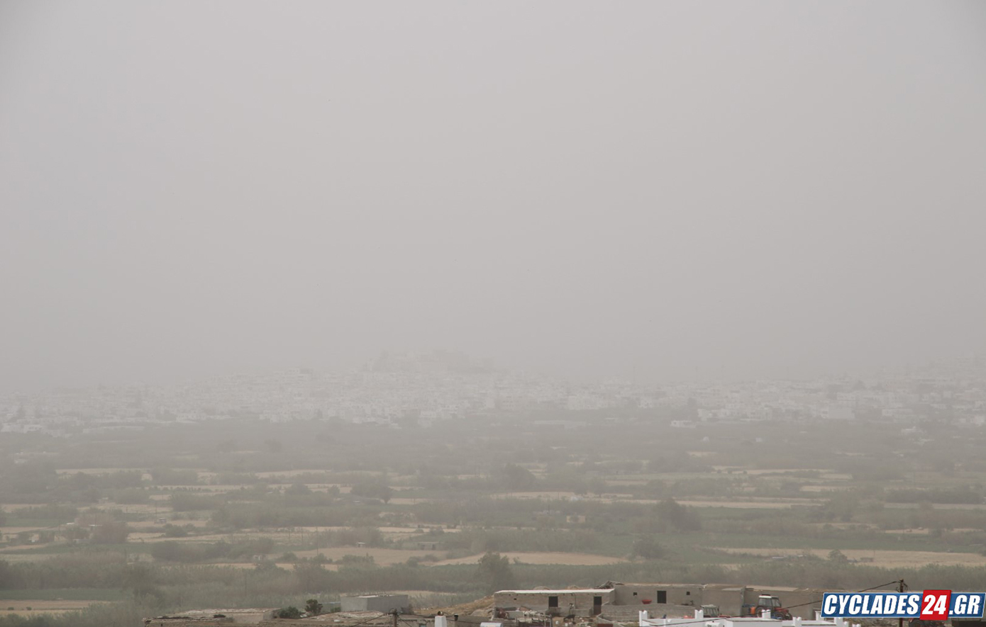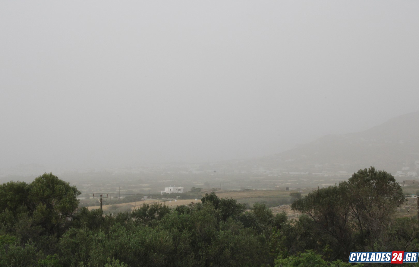 Καλυμμένη από ένα πέπλο αφρικανικής σκόνης «ξύπνησε» το πρωί της Τετάρτης η Νάξος.