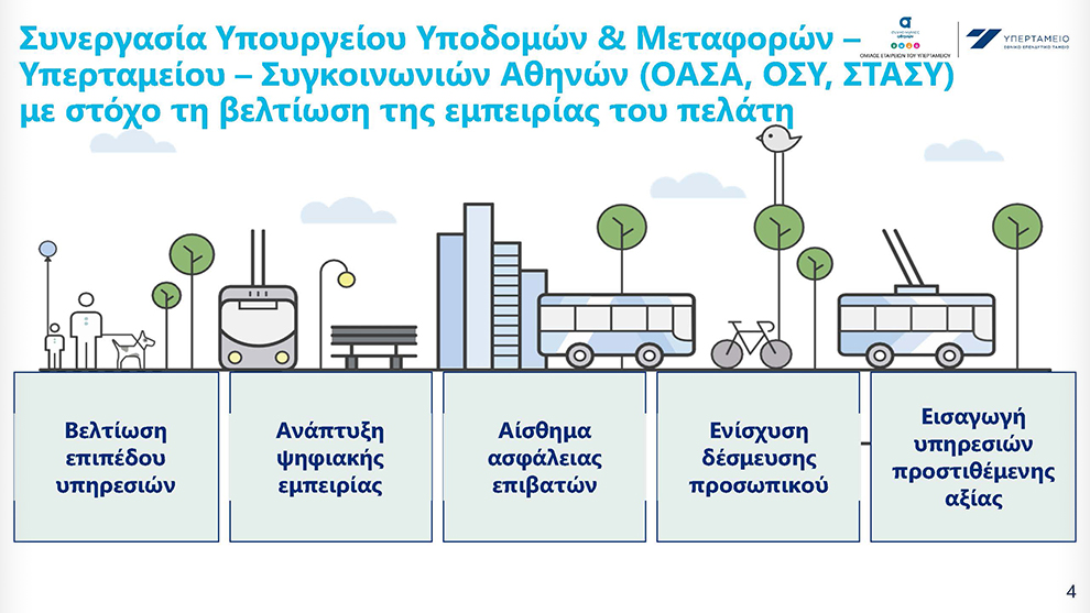 Όπως ανέφερε ο διευθύνων σύμβουλος του Υπερταμείου Γρηγόρης Δ. Δημητριάδης, «το σύστημα αστικών συγκοινωνιών ανασχεδιάστηκε με αφορμή τους Ολυμπιακούς Αγώνες της Αθήνας. Είκοσι χρόνια μετά έχει μεσολαβήσει μια μεγάλη περίοδος και βέβαια η πανδημία που άλλαξε άρδην τη λογική της μαζικής μετακίνησης στην πόλη. Τα τελευταία χρόνια έχει γίνει μια συστηματική προσπάθεια κι ένας νέος σχεδιασμός για τη νέα εποχή των συγκοινωνιών σε άμεση συνεργασία με το εποπτεύον υπουργείο, το υπουργείο Υποδομών Μεταφορών. Και σε αυτό το πεδίο δράσης του Υπερταμείου, υλοποιούμε τη στρατηγική μας για την ενίσχυση του αποτυπώματός μας στην οικονομία, την κοινωνία και το περιβάλλον: παρέχοντας καλύτερες συγκοινωνίες, βελτιωμένες υποδομές σε σχεδιασμό και λειτουργία, φιλικότερες προς το περιβάλλον, και όλα αυτά με το χαμηλότερο κόστος στον Έλληνα φορολογούμενο».