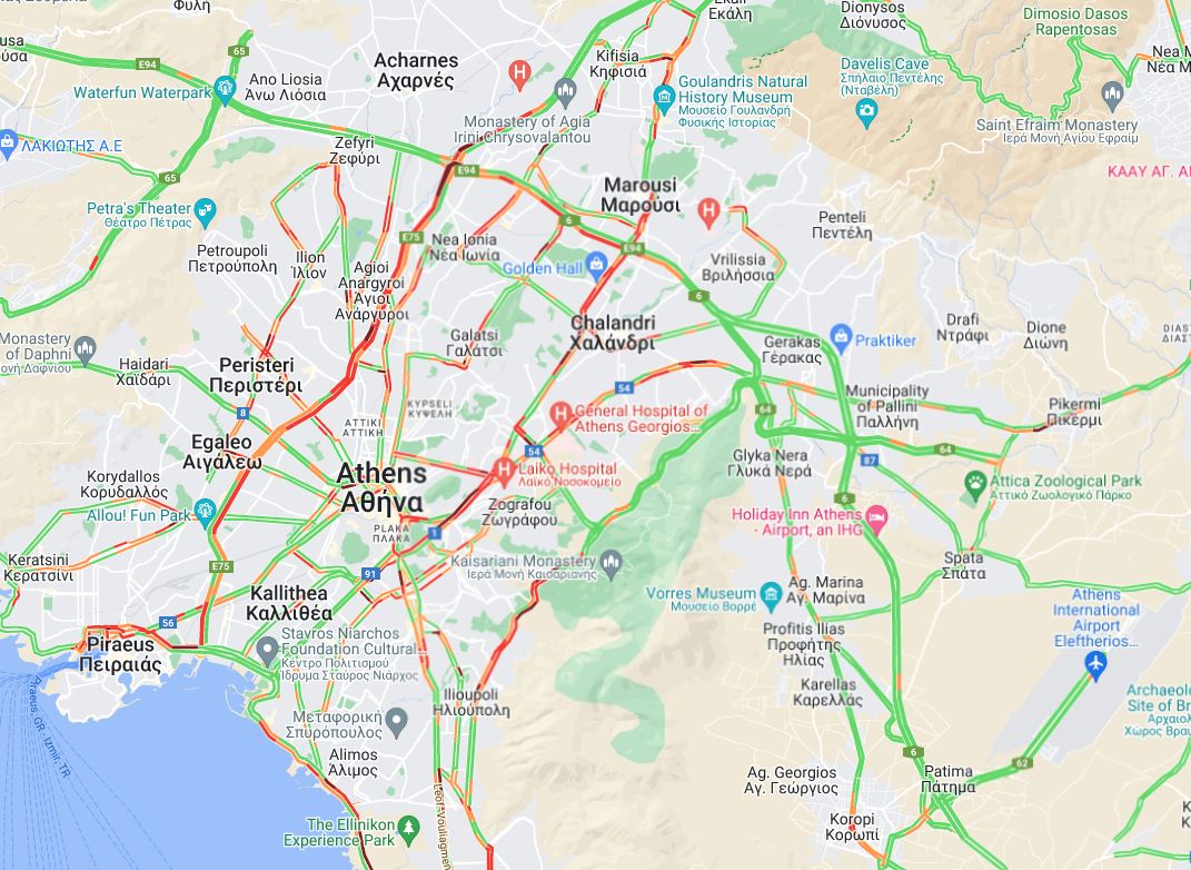 Συγκεκριμένα, τεράστια κυκλοφοριακά προβλήματα εντοπίζονται στον Κηφισό. Στο ρεύμα καθόδου η κίνηση ξεκινάει από την Κηφισιά και φτάνει έως και τον Πειραιά, ενώ στην άνοδο ξεκινάει από το Αιγάλεω και φτάνει έως τη Νέα Φιλαδέλφεια.