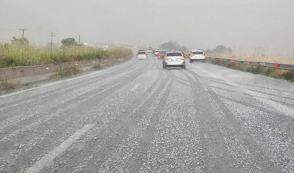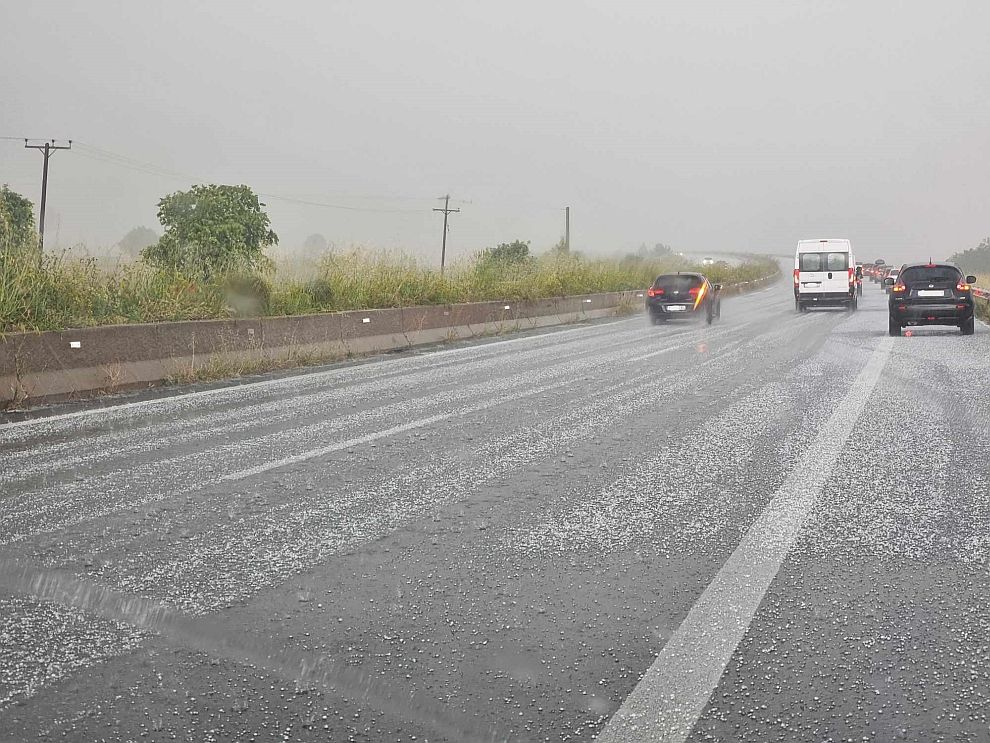 Έντονη χαλαζόπτωση έπληξε την Ροδόπη, όπου στην Εγνατία οδό, στο ύψος του Σώστη, το χαλάζι ήταν τόσο έντονο που το «έστρωσε» στο δρόμο.