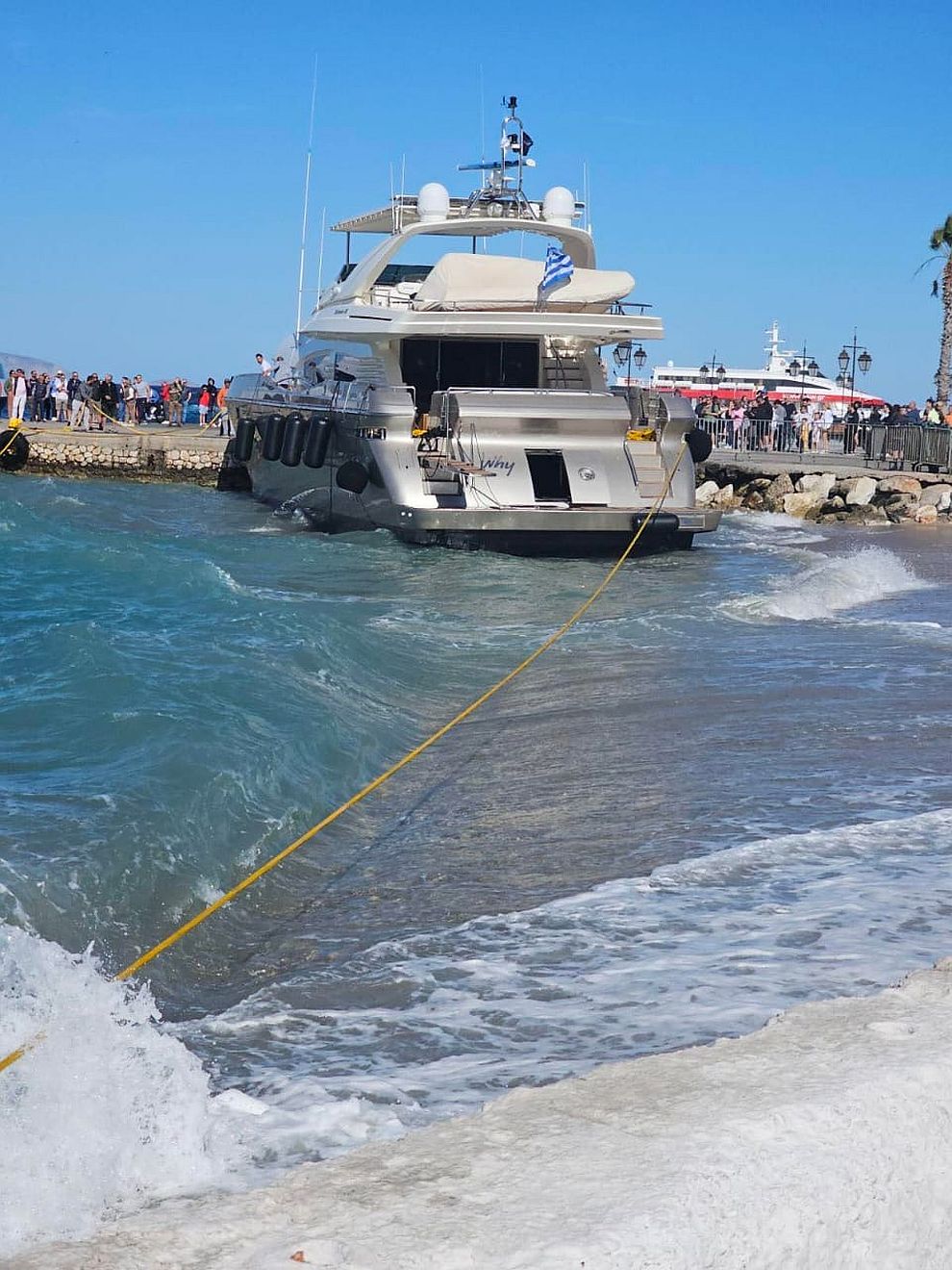 Εξαιτίας των πολλών μποφόρ ένα πολυτελές γιοτ, χτύπησε στην προβλήτα του λιμανιού, χωρίς ευτυχώς να τραυματιστεί κανείς.