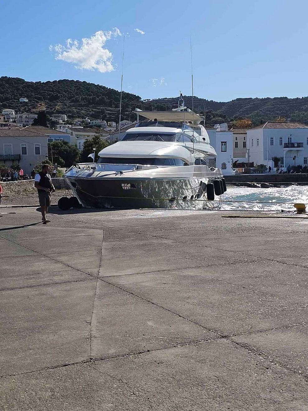 Από τη σύγκρουση προκλήθηκε ζημιά στην πλώρη της πολυτελούς θαλαμηγού.