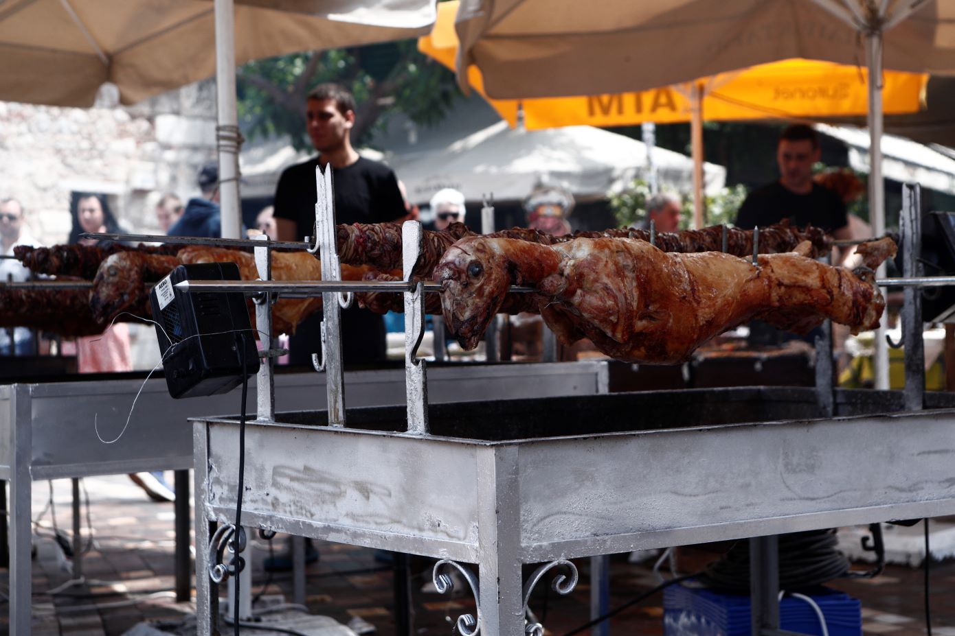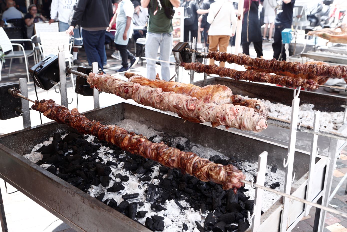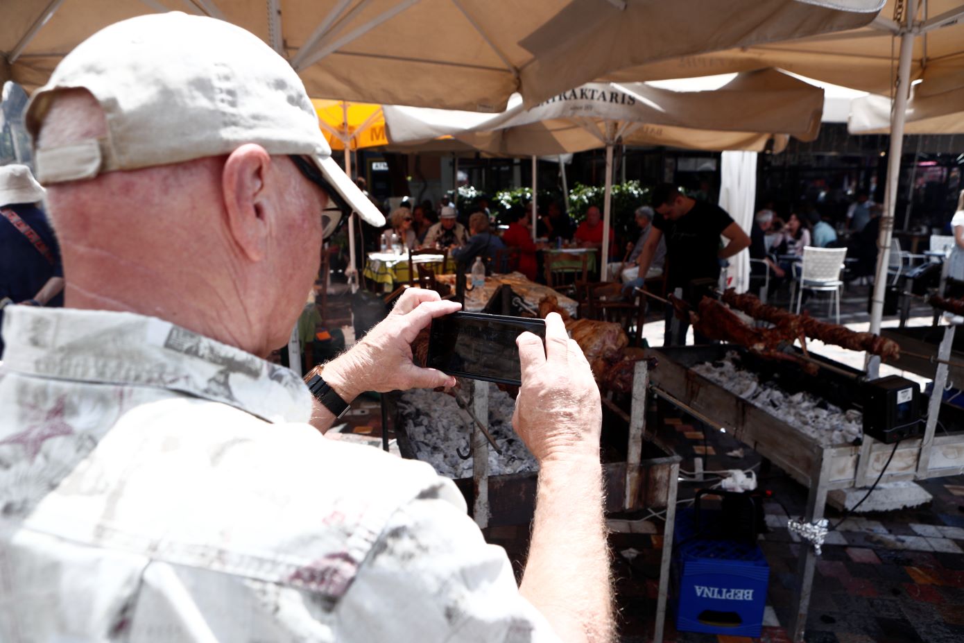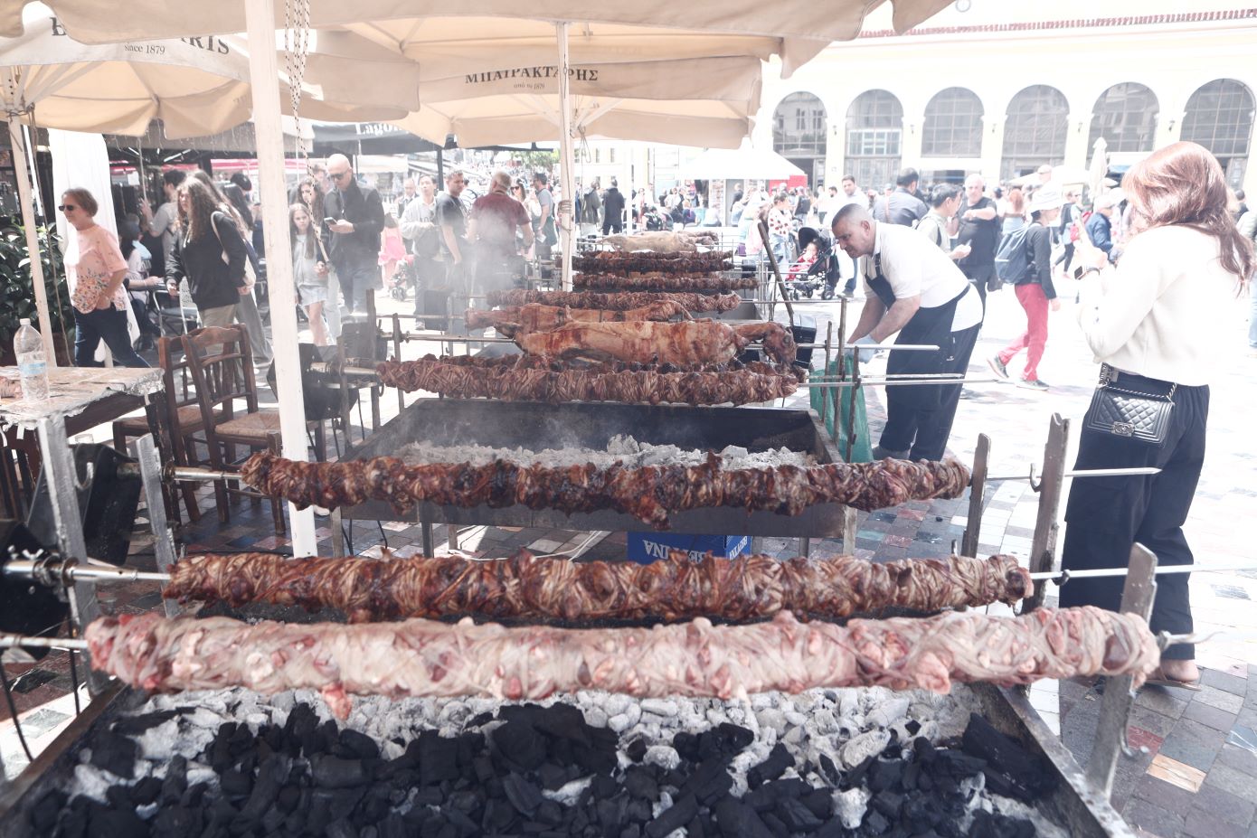 Από το πρωί είχαν φροντίσει να βάλουν σούβλες οι καταστηματάρχες, για όσους προτίμησαν να απολαύσουν τα πασχαλινά εδέσματα χωρίς κόπο.