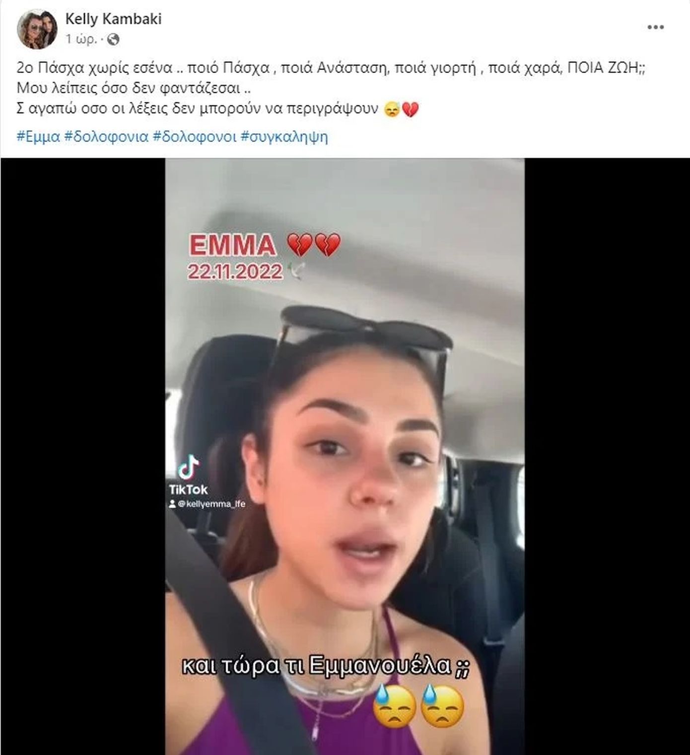 Με μία συγκινητική ανάρτηση για το παιδί της, όπως αναφέρει το thestival.gr η Κέλλυ Καμπάκη κοινοποίησε ένα βίντεο με την Έμμα. Στην ανάρτησή της έγραψε: «2ο Πάσχα χωρίς εσένα .. ποιό Πάσχα , ποιά Ανάσταση, ποιά γιορτή , ποιά χαρά, ΠΟΙΑ ΖΩΗ;; Μου λείπεις όσο δεν φαντάζεσαι .. Σ αγαπώ οσο οι λέξεις δεν μπορούν να περιγράψουν».