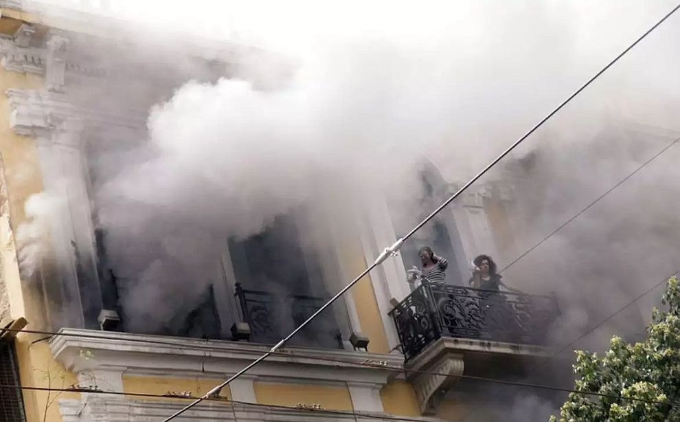 Σε ελάχιστα λεπτά, άγνωστοι με κουκούλες σπάνε την τζαμαρία της Marfin και πετούν μέσα μολότοφ. Αμέσως προκαλείται φωτιά, η οποία εξαπλώνεται γρήγορα και το κτήριο γεμίζει αποπνικτικούς καπνούς. Αρχικά, οι εργαζόμενοι επιχειρούν να τη σβήσουν με πυροσβεστήρες αλλά σύντομα εγκαταλείπουν την προσπάθεια και ξεκινούν να βρουν τρόπο και οδό διαφυγής, ψάχνουν ένα σημείο του κτηρίου από όπου θα μπορούσαν να βγουν έξω.