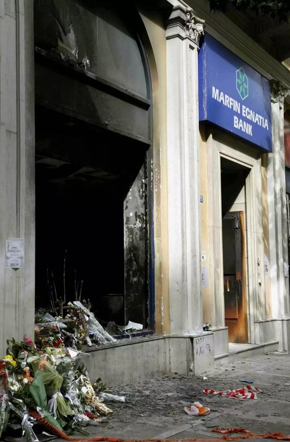 Η 32χρονη Αγγελική Παπαθανασοπούλου, η οποία ήταν 4 μηνών έγκυος, ο 36χρονος Επαμεινώνδας Τσάκαλης, και η Παρασκευή Ζούλια, 35 ετών βρήκαν τραγικό θάνατο, στις 5 Μαΐου 2010, όταν εγκλωβίστηκαν μαζί με τους συναδέλφους τους μέσα στο φλεγόμενο υποκατάστημα της τράπεζας.