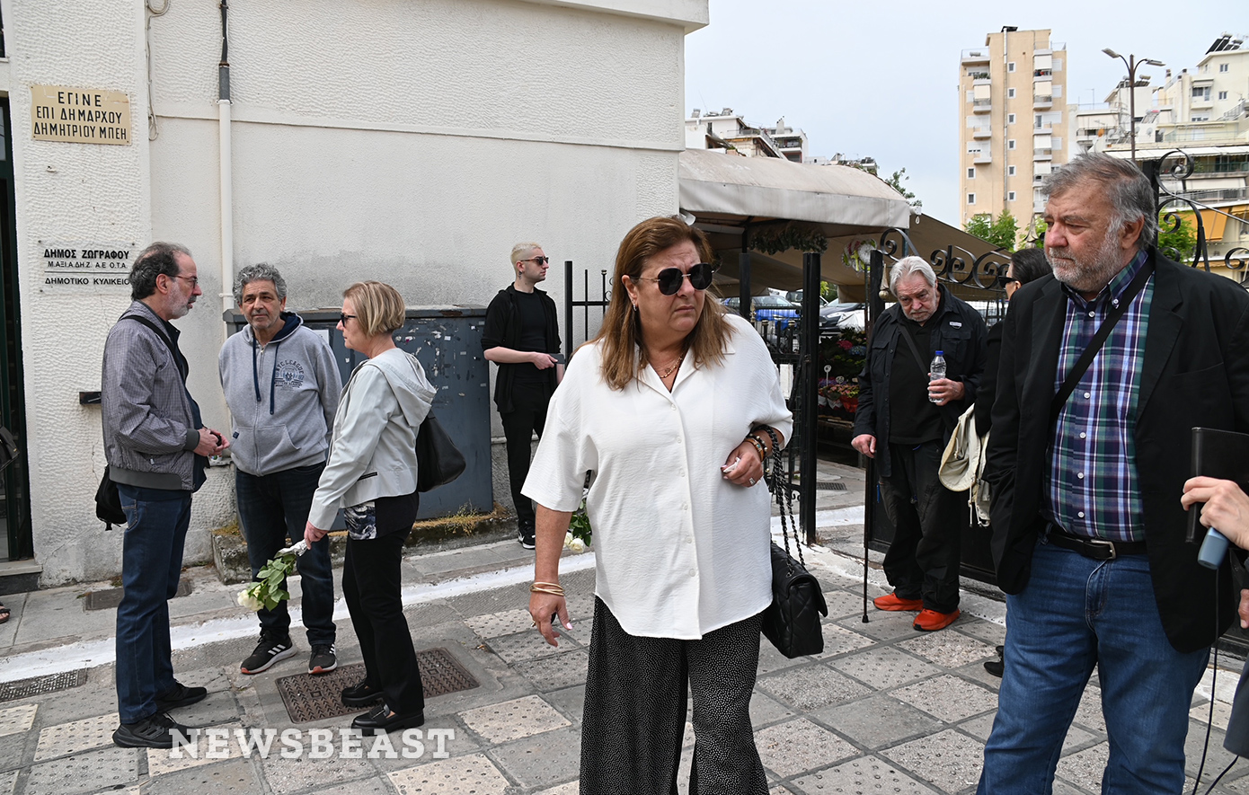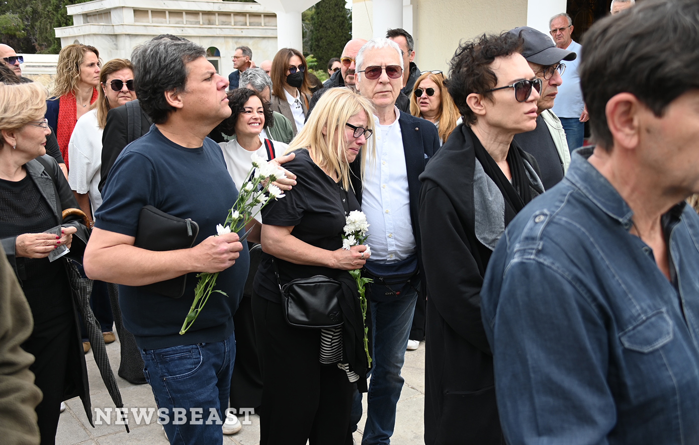 Συγκεντρωμένοι ήταν στενοί φίλοι της ηθοποιού, όπως ο Σταμάτης Φασουλής, ο Μιχάλης Ρέππας, ο Αλέξανδρος Αντωνόπουλος και η Κάτια Κανδουλάκη και όλοι τους ξέσπασαν σε χειροκροτήματα την ώρα που το φέρετρο βγήκε από την εκκλησία.