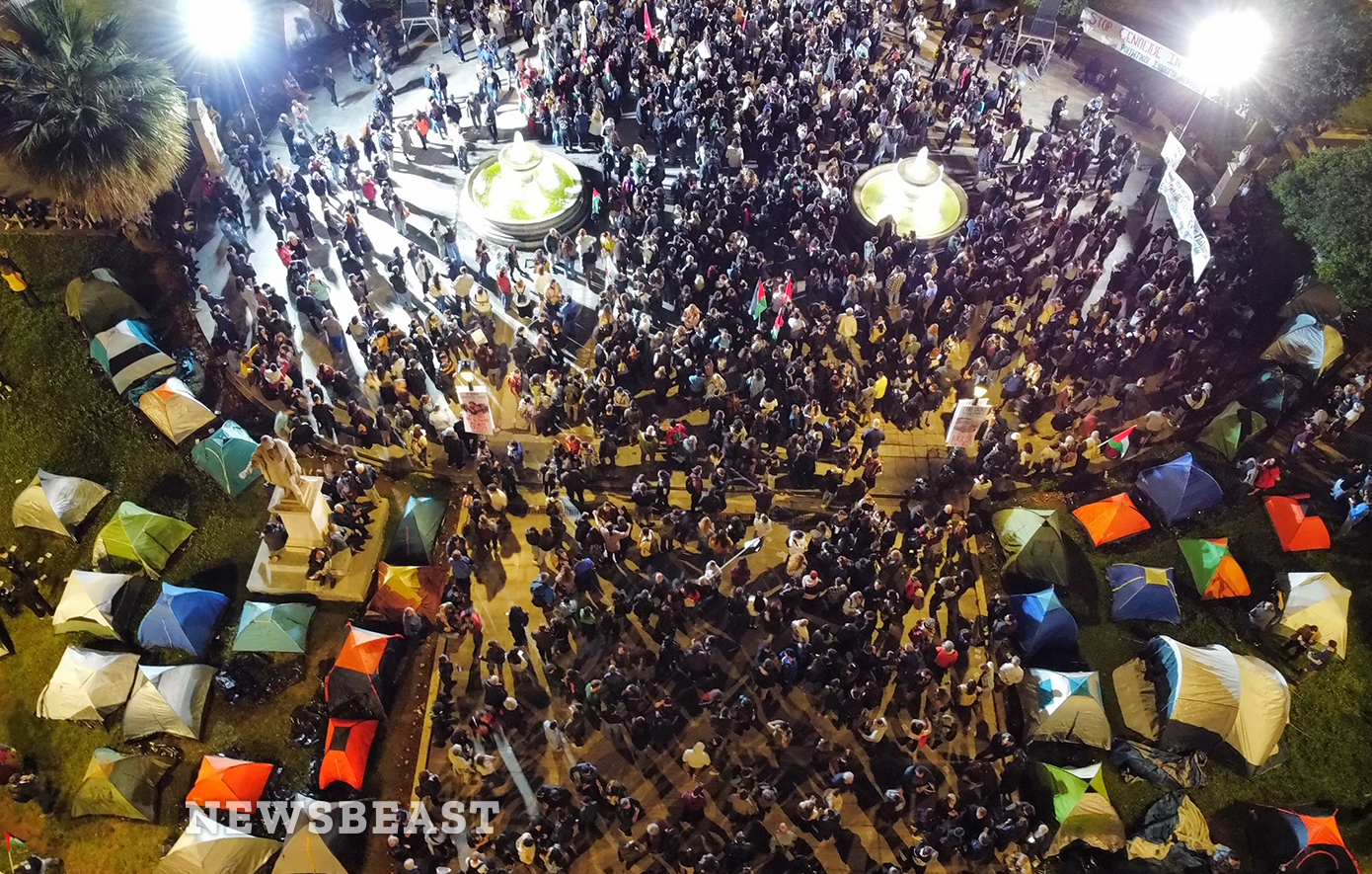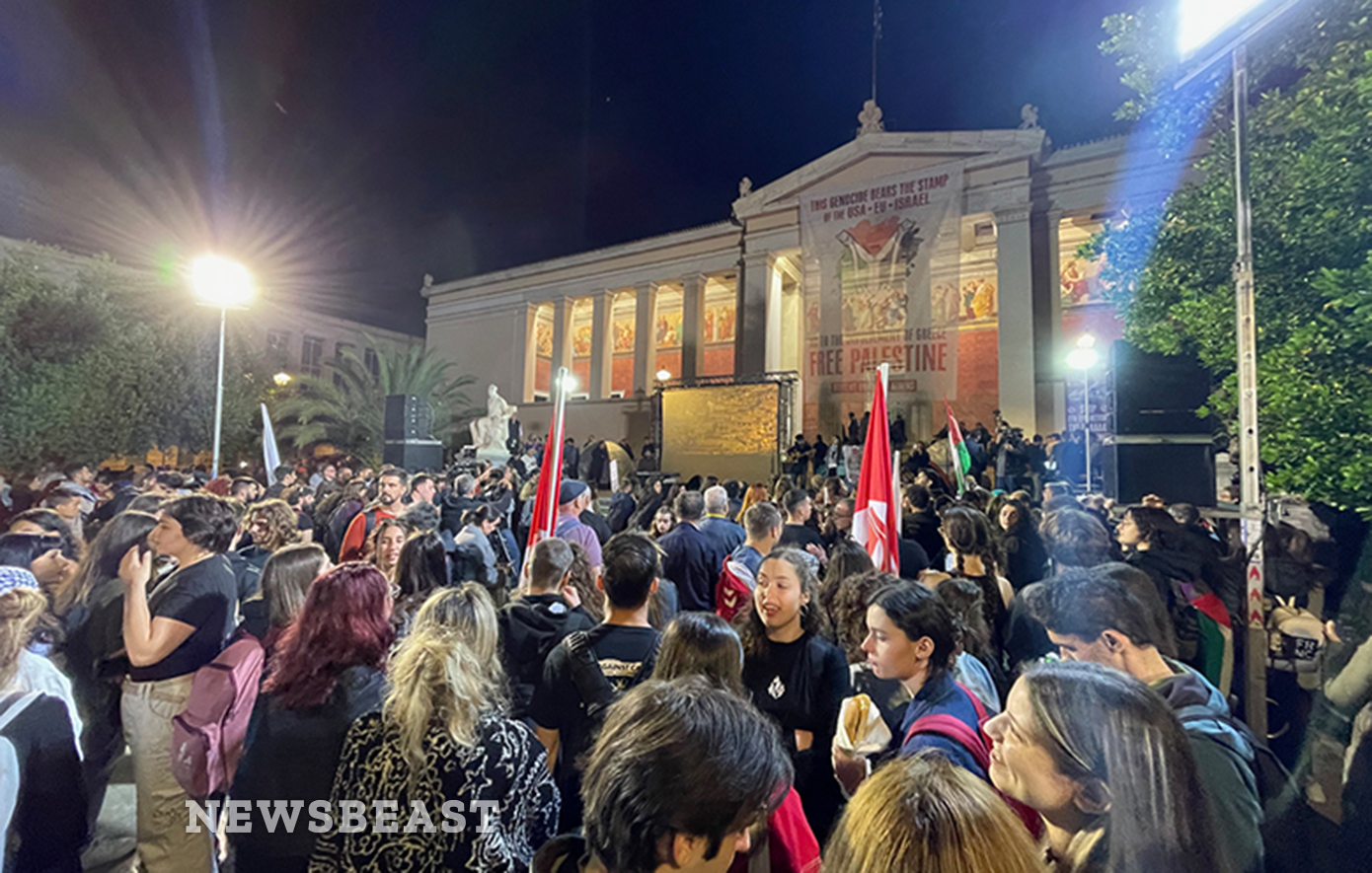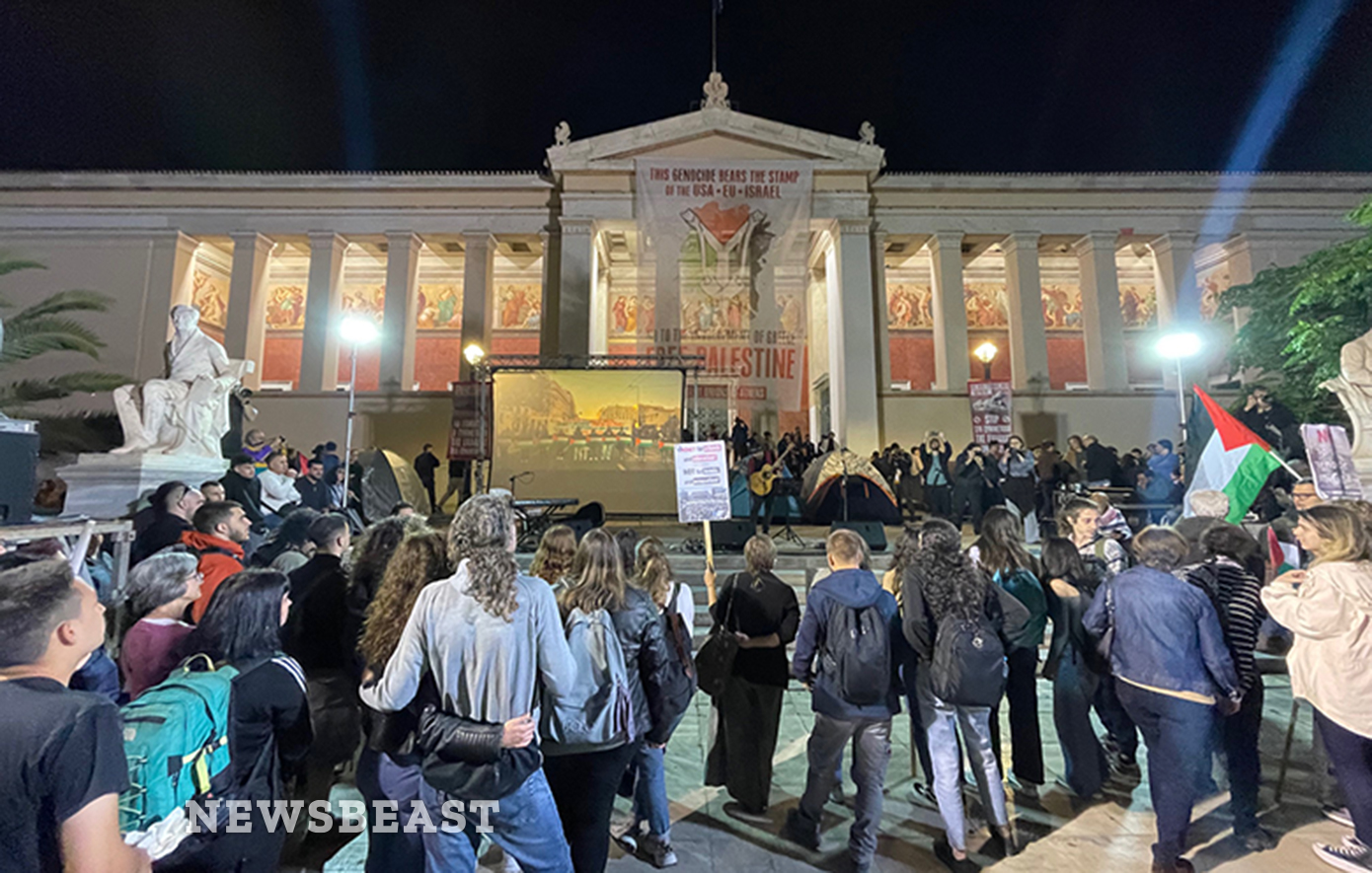 Με σκοπό να ενώσουν τις φωνές τους με εκείνες των φοιτητών σε όλον τον κόσμο, δείχνοντας αλληλεγγύη στον λαό της Παλαιστίνης, φοιτητικοί σύλλογοι των αθηναϊκών πανεπιστημίων συγκεντρώνονται έξω από τα Προπύλαια στο κέντρο της Αθήνας.