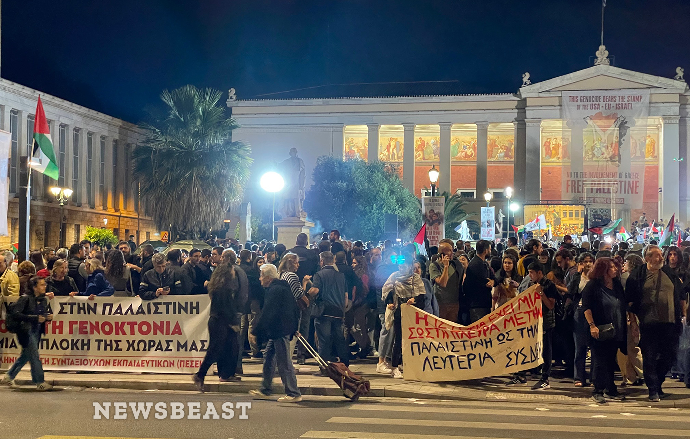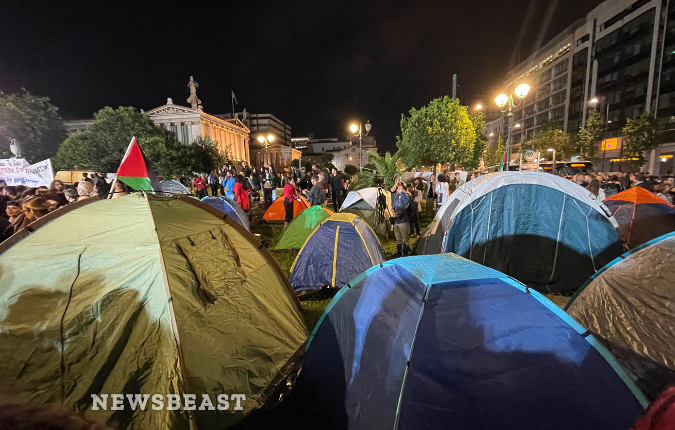 Ολονύχτια δράση αλληλεγγύης προς τον λαό της Παλαιστίνης πραγματοποιούν φοιτητικοί σύλλογοι, συνδικάτα, σωματεία εργαζομένων και άλλες συλλογικότητες της πόλης.