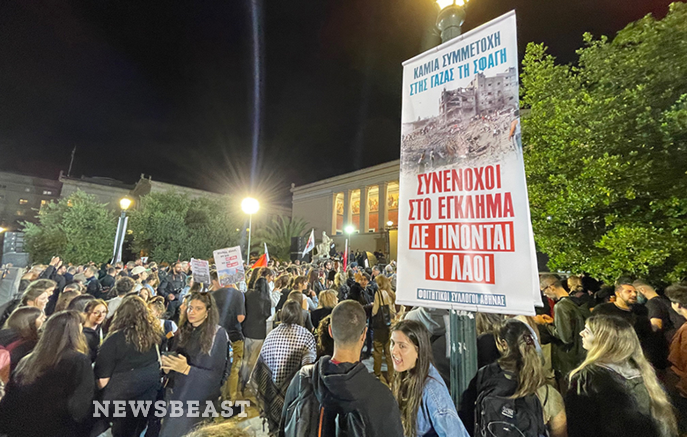 «Ενώνουμε τη φωνή μας με τους φοιτητές σε όλο τον κόσμο, γινόμαστε ένας ακόμα κρίκος στη μεγάλη αλυσίδα αλληλεγγύης στον παλαιστινιακό λαό που όλο και δυναμώνει», αναφέρουν εκπρόσωποι των φοιτητικών συλλόγων.