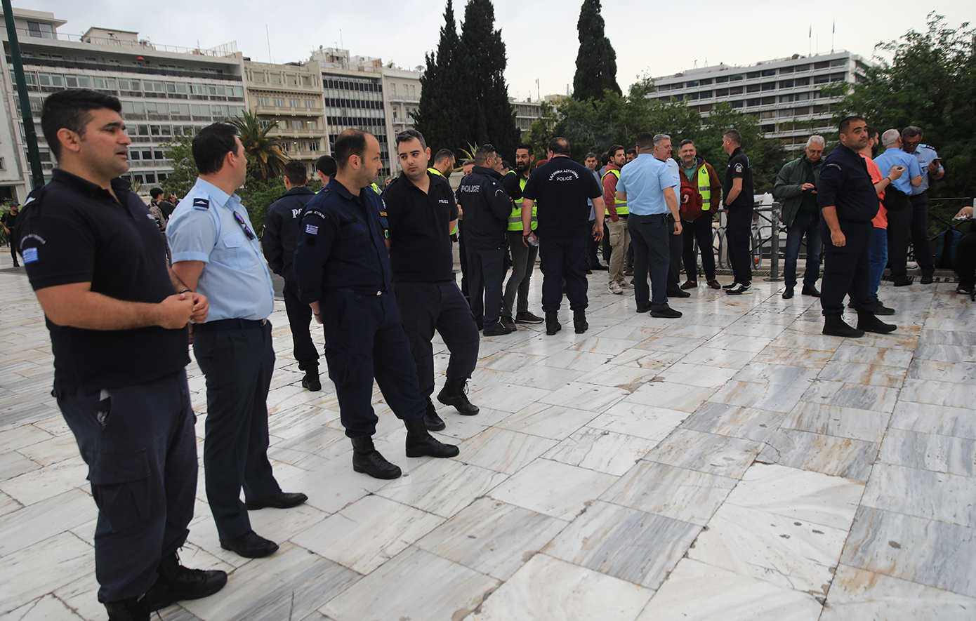 Δεκάδες αστυνομικοί, οι οποίοι βρίσκεται στο Σύνταγμα, εκφράσουν τη διαφωνία τους σχετικά με τη μείωση της αποζημίωσης διανυκτέρευσης των αποσπασθέντων συναδέλφων τους σε τρεις υπηρεσίες της Αττικής και της Θεσσαλονίκης.