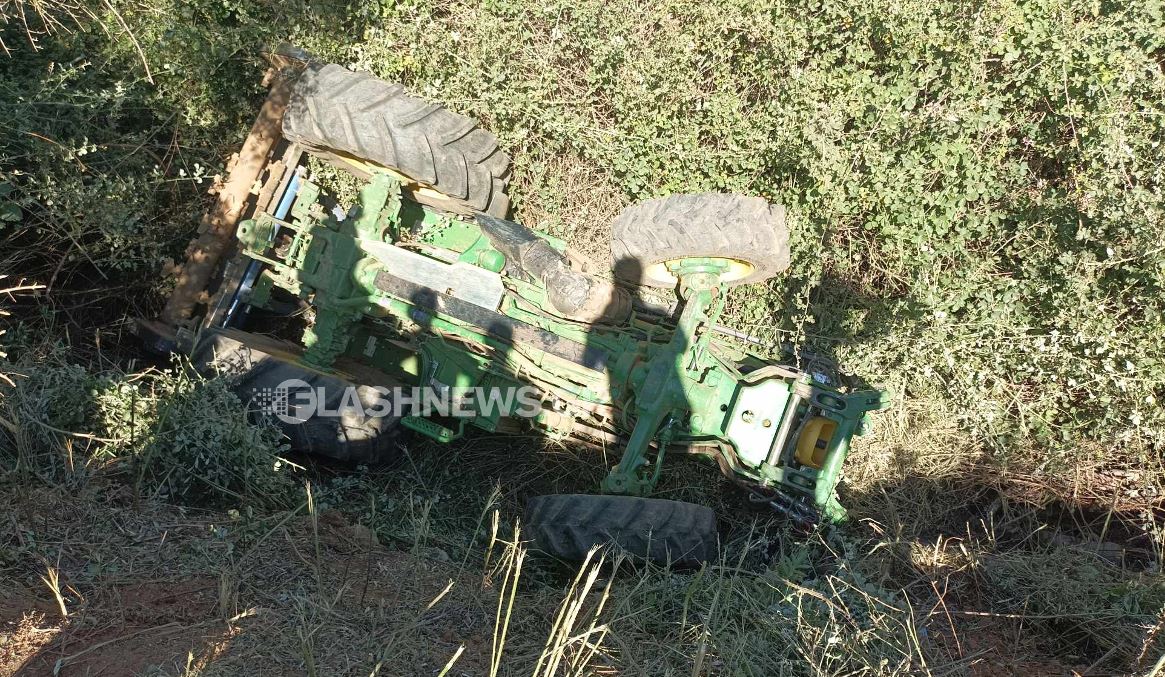 Στο σημείο μετέβησαν και αστυνομικοί για να ερευνήσουν το τι ακριβώς συνέβη και το τρακτέρ ανετράπη σε χαντάκι βάθους περίπου 2,5 μέτρων.