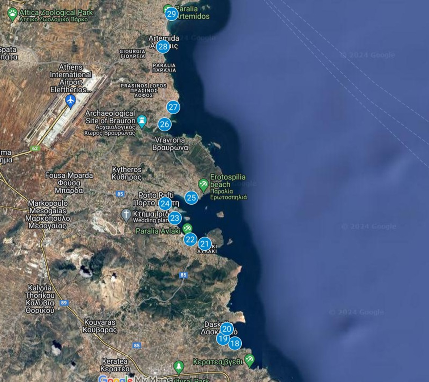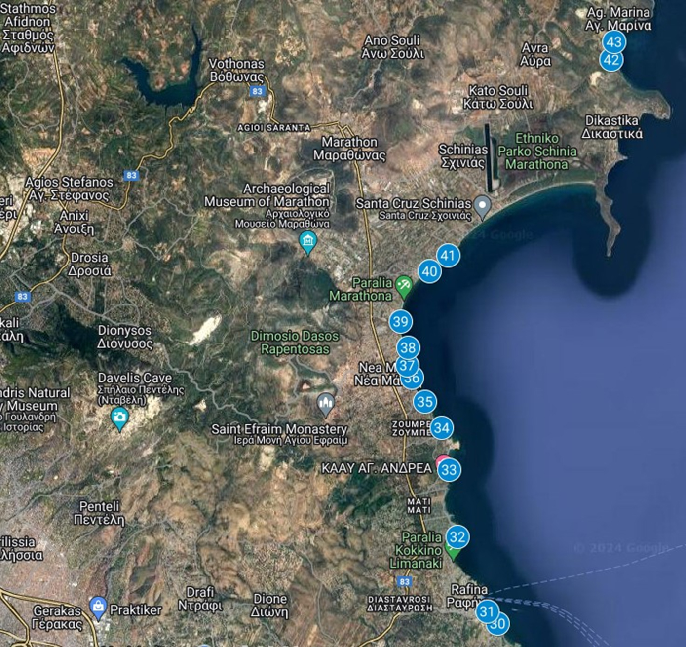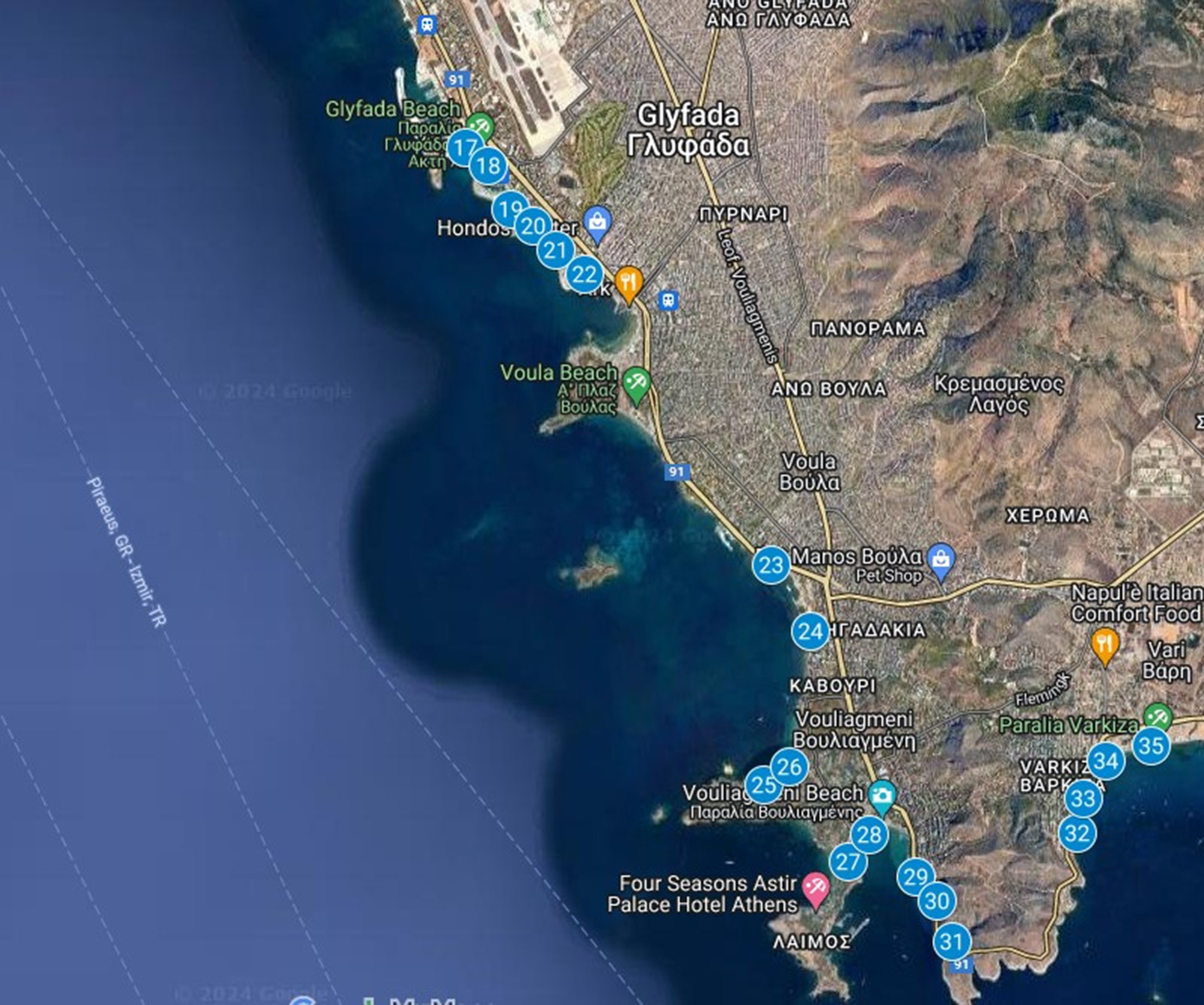 Λίγες ημέρες πριν είχαν δημοσιευτεί τα στοιχεία από Πειραιά μέχρι Ανάβυσσο. Από τα 61 δείγματα που εξετάστηκαν τα 17, δηλαδή 27,86%, βρέθηκαν ακατάλληλα (Α) για κολύμβηση, ενώ τα σαράντα τέσσερα (44), δηλαδή 72,13%, βρέθηκαν κατάλληλα (Κ) για κολύμβηση.