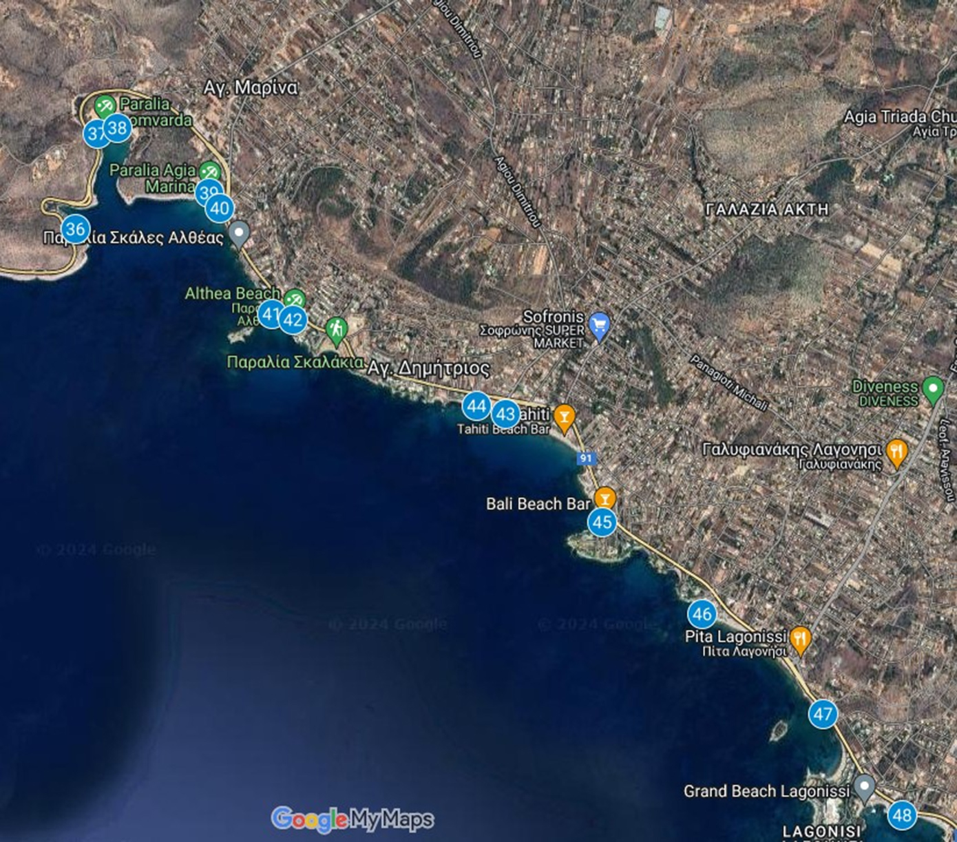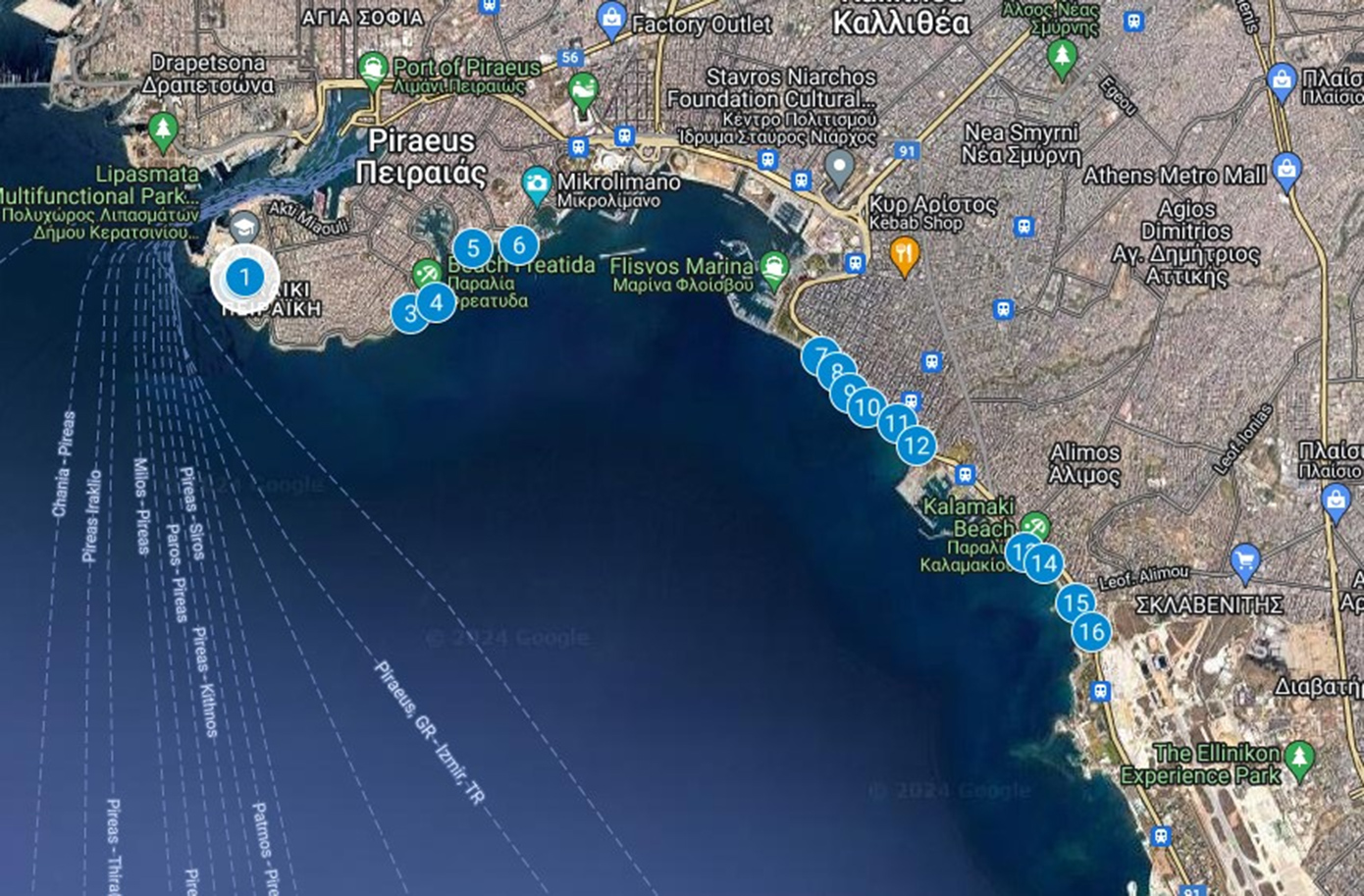 Με (Α) ορίζονται τα ακατάλληλα νερά για κολύμβηση ενώ με (Κ) τα κατάλληλα για κολύμβηση νερά.