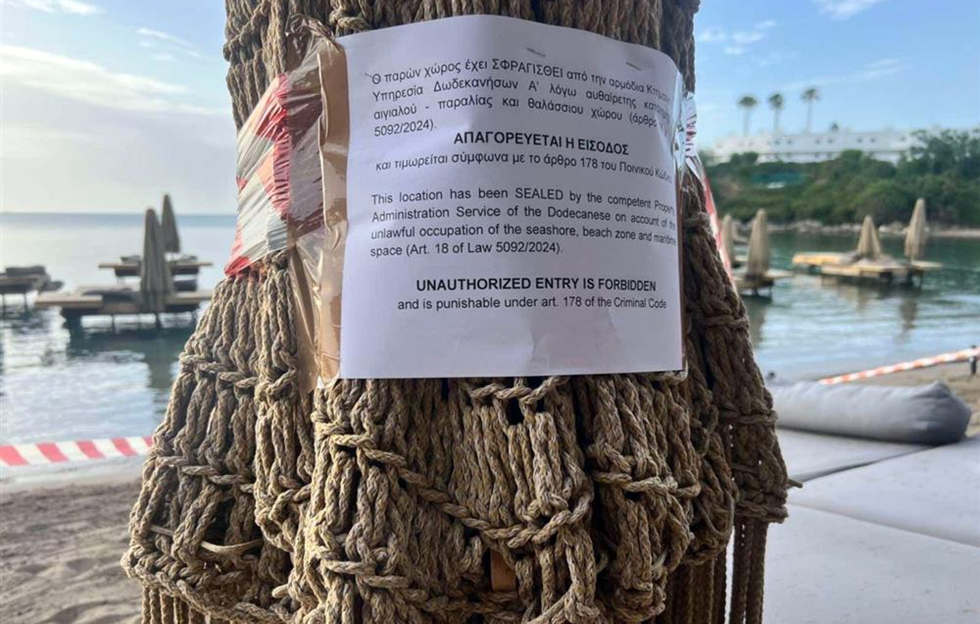 «Μας θλίβει το γεγονός ότι θα κλείσει μια επιχείρηση, αλλά παραβιάζεται η νομοθεσία για κοινοχρησία αιγιαλού, καθώς και πολεοδομικοί και αρχαιολογικοί κανόνες», ανέφερε ο αντιδήμαρχος Ρόδου, Κώστας Χαλκιάς, για το κατάστημα με τις μεταλλικές εξέδρες μέσα στη θάλασσα, που είχε απασχολήσει τη δημοσιότητα και πέρυσι για τον ίδιο λόγο.