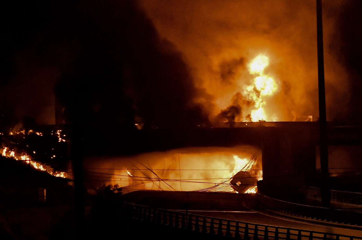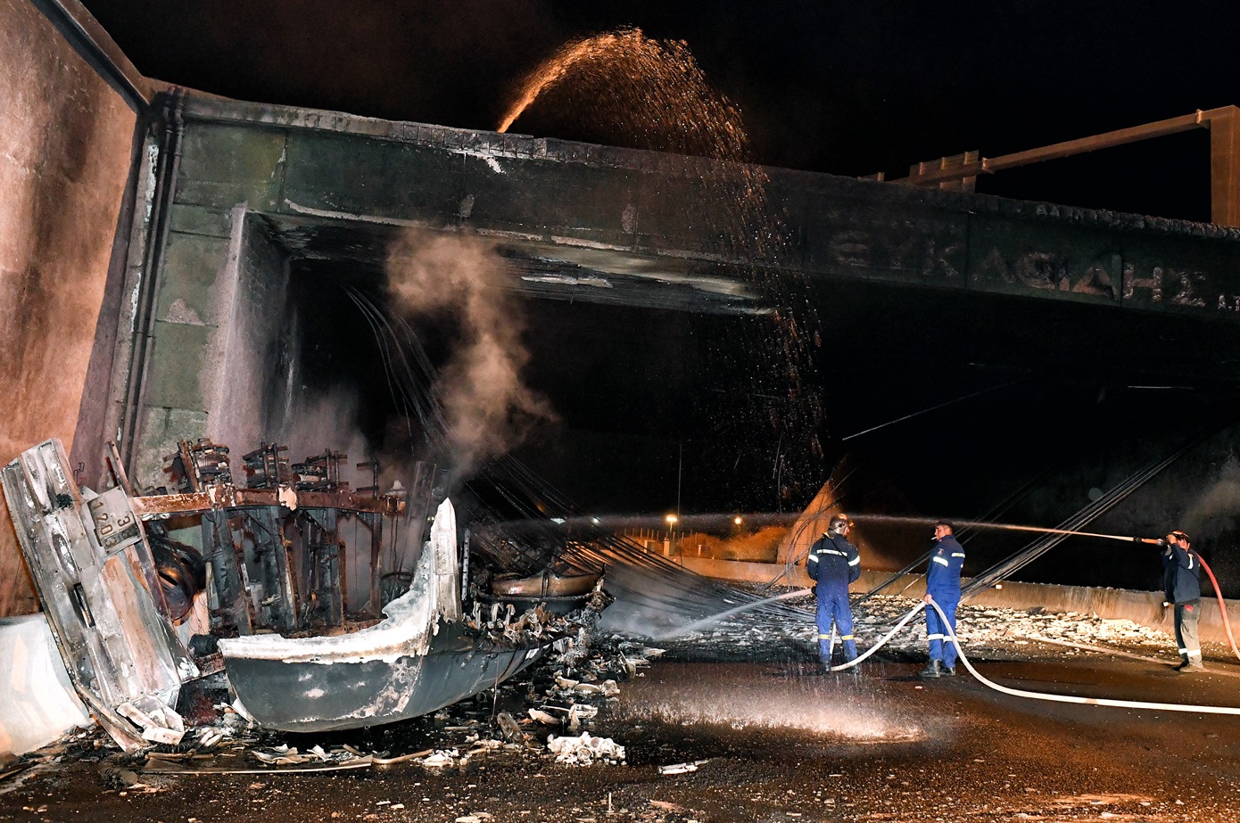 Πρόβλημα υπάρχει στην αερογέφυρα κάτω από την οποία εξετράπη το βυτιοφόρο, καθώς λόγω της υψηλής θερμοκρασίας που αναπτύχθηκε από τη φωτιά προκλήθηκαν ζημιές σε αυτή.