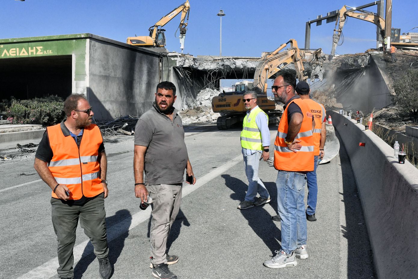 Σε συνεννόηση και στενή συνεργασία με την «Ολύμπια Οδό» και τις υπηρεσίες του υπουργείου Μεταφορών και Υποδομών και έχοντας ως πρώτη προτεραιότητα την ασφάλεια των χρηστών του αυτοκινητοδρόμου, ο Όμιλος ΑΒΑΞ, σύμφωνα με ανακοίνωσή του, συνδράμει στην προσπάθεια με 20 εργαζόμενους (μηχανικούς, οδηγούς, χειριστές) και 9 μηχανήματα (ερπυστριοφόρα, φορτωτές και φορτηγά) για την κατεδάφιση της γέφυρας, την απομάκρυνση των επικίνδυνων υλικών και την αποκατάσταση του οδοστρώματος προκειμένου να ξαναδοθεί σε κυκλοφορία.